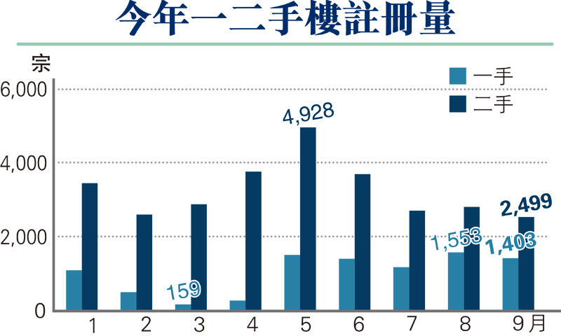 受第五波疫情影響,今年上半年一手盤成交量大減,其中2月至3月新盤推售接近停頓。綜合土地註冊處最新數據所得,今年上半年全港累錄4,822宗一手私宅買賣登記,較去年下半年的9,277宗急挫48%,而與去年同期比較亦跌42%,創下自2013年上半年一手新例後的18個半年度新低。上半年二手住宅註冊量錄約2.1萬宗 ,亦見兩年半新低。原本以為下半年發展商會積極推盤追落後,無奈美國持續大幅加息,扯高港元拆息,令香港H按的供樓支出開始上升,新盤開價不惜以低二手呎價一成吸客,引來哄動,惟本港9月加最優惠利率,正式步入加息期,直接影響置業意慾,新盤銷情亦受拖累,9月一二手盤成交量更跌至只有3,600宗,是今年2月後新低。