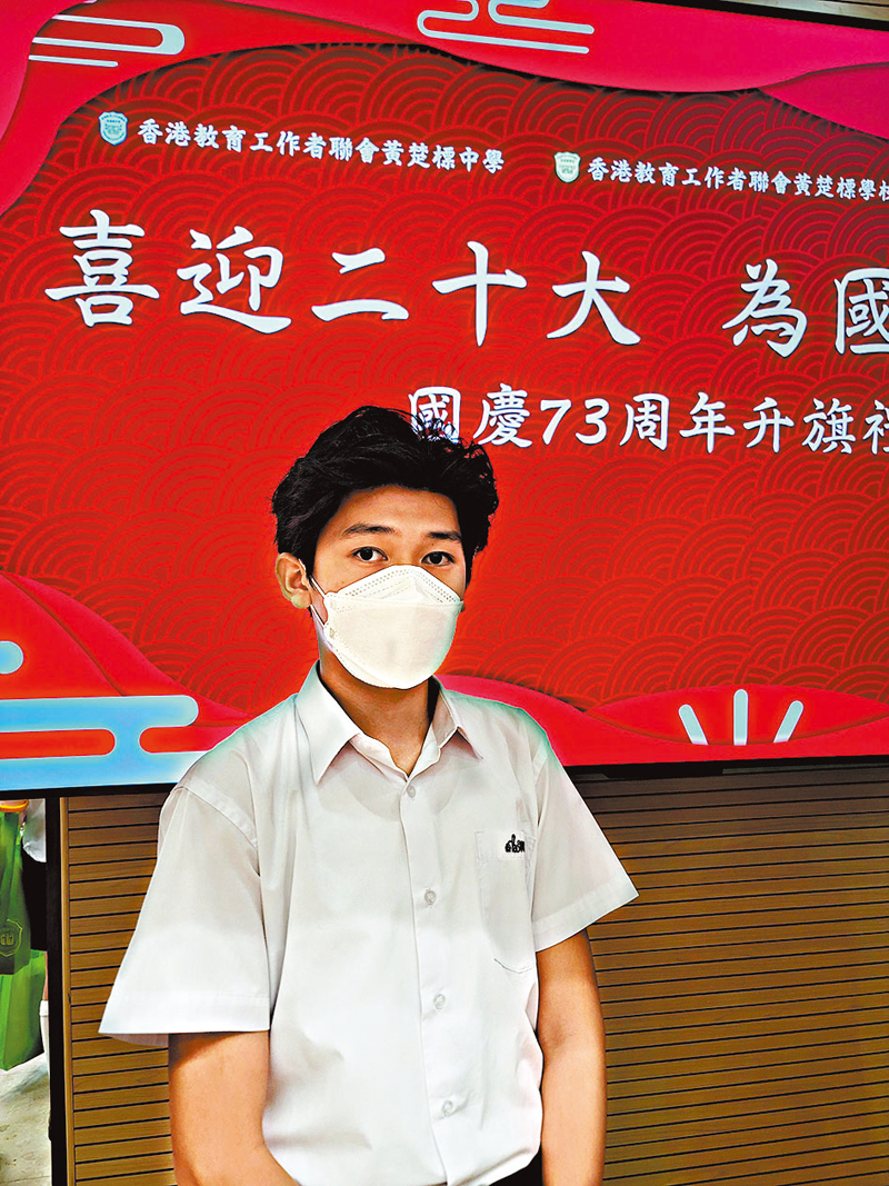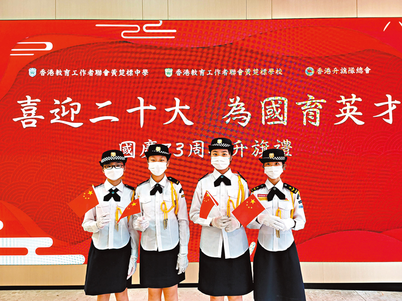 香港文匯報訊(記者 金文博)黃楚標中學校長兼香港升旗隊總會榮譽總監許振隆在「喜迎二十大 為國育英才」國慶升旗禮表示,即將召開的中共二十大是一個契機,讓同學以至全體港人更多了解國家發展,以及香港與國家血脈相連的緊密關係。