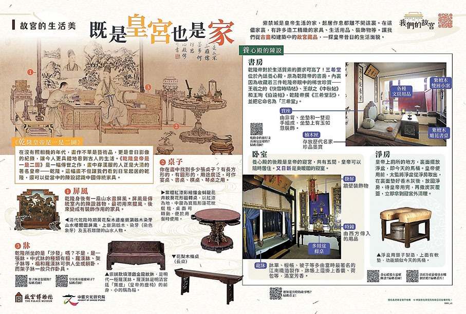 邱逸表示,「我們的故宮」系列教材多元豐富,包括專題展板、掛圖、影片、動畫、工作紙及學習平台等,以故宮的建築、生活、藝術和人物為主題,承載中國歷史文化的人和事,跨越中文、中史、常識、視藝、音樂、生活與社會及公民與社會發展等多個科目,可配合香港本地學校課程與學生學習興趣和能力,通過跨學科的專題活動和課堂學習,以及透過文化講座對教師進行培訓,把故宮文化滲透進學與教的每一個板塊。