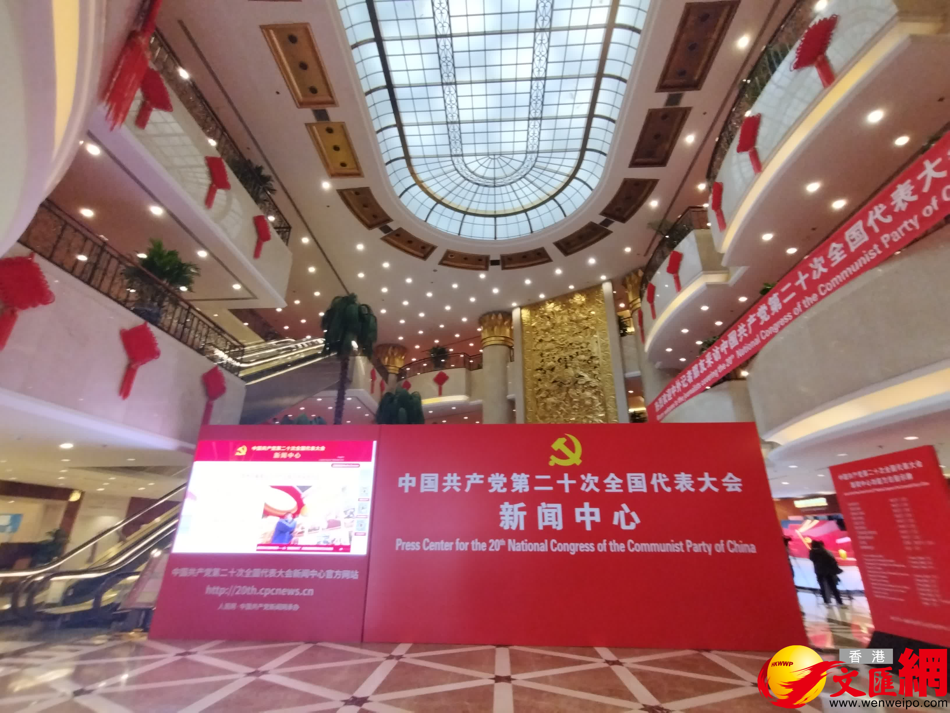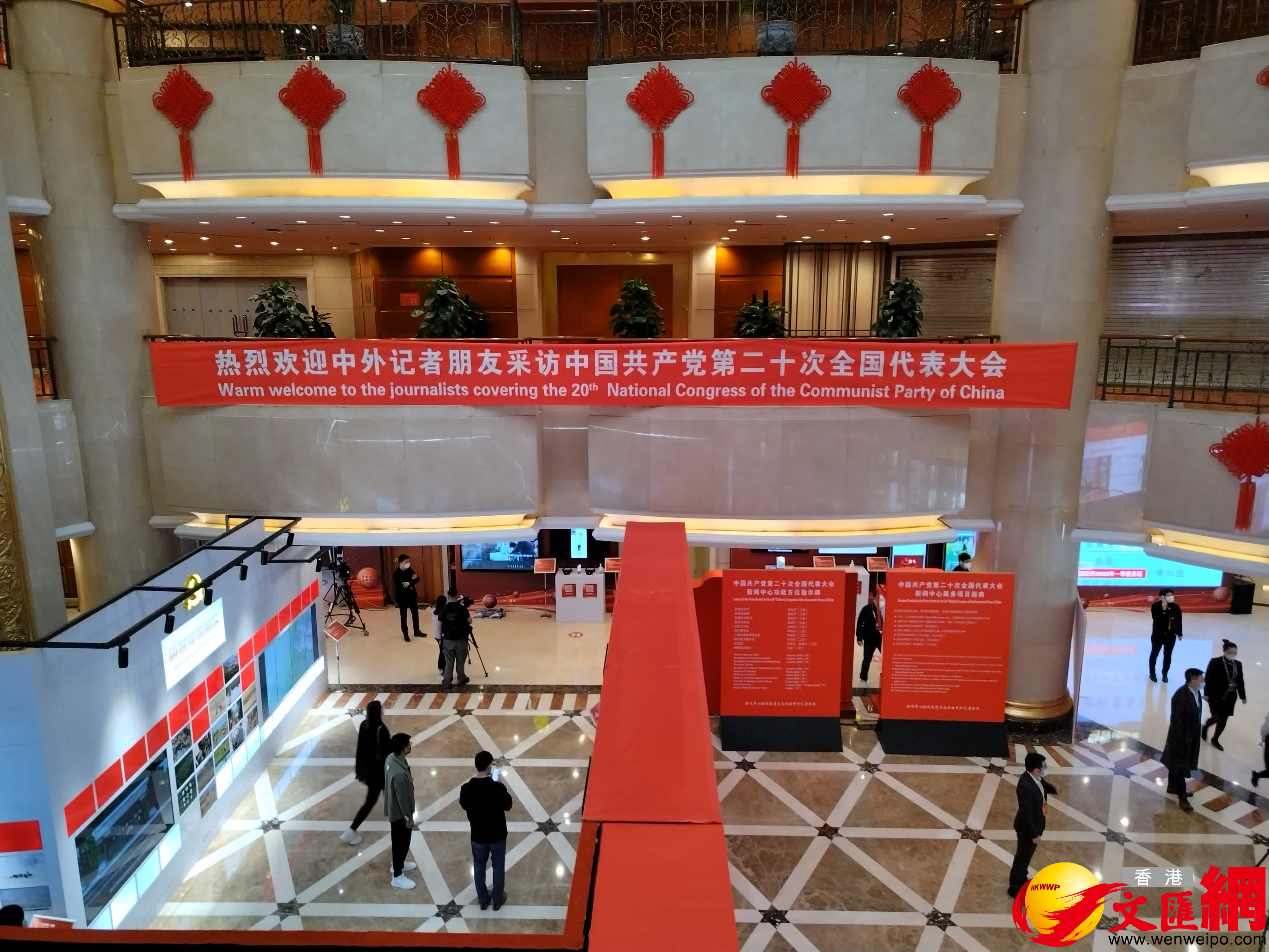 (香港文匯網記者 馬曉芳、任芳頡 北京報道)中國共產黨第二十次全國代表大會新聞中心12日啟用並開始對外接待服務,新聞中心記者接待服務區設在北京新世紀日航飯店。記者在新聞中心看到,中國紅主色調喜慶隆重,在記者工作區門口通道專設了燕京八絕、京劇戲服等非遺展示,吸引不少外國記者駐足拍攝。融媒體驗區科技感十足,多面照片牆多角度展示中國近年來的發展,每張照片右下角還附有二維碼,觀眾可以用手機掃碼睇片看影像裏的新時代。