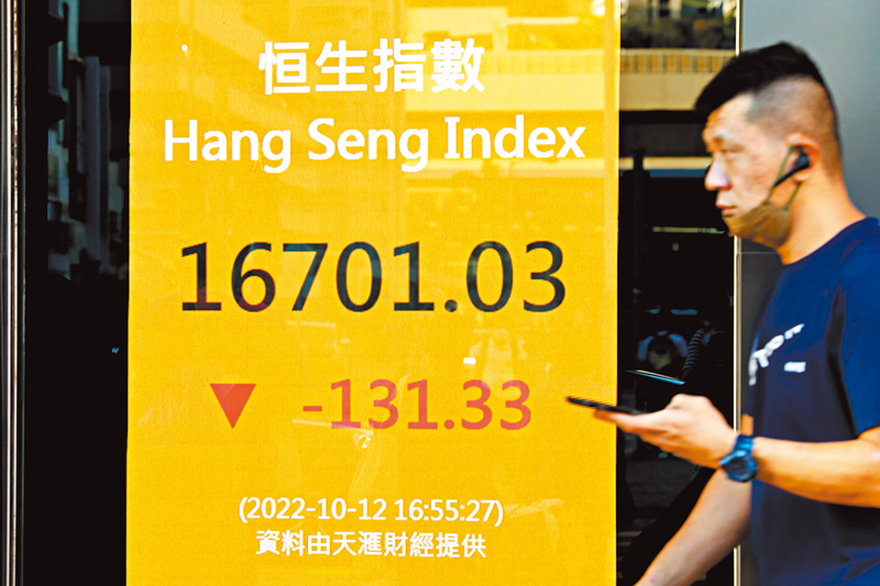 恒指昨曾跌近400點,低見16,438點,續見11年新低,全日跌幅略收窄至131點,收報16,701點,成交回升至1,128億元。港股連跌5日,累跌1,386點。亞太股市除韓股及A股外,其他市場都向下。全球最大避險基金橋水創辦人、人稱「鱷王」達利奧警告,通脹居高不下,全球央行都大幅加息,一場「完美風暴」正在形成,將使美國甚至全球經濟痛苦。