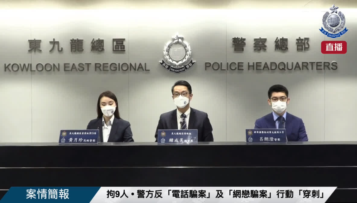 東九龍總區刑事部高級督察黃月珍簡報案情時表示,警方根據線報及深入調查,鎖定一個由黑社會操控的詐騙集團,該集團主要以「猜猜我是誰」及「網上情緣」兩種方式行騙,目標以長者及中年女性為主。本地詐騙集團會與境外詐騙集團合作,當境外詐騙集團成功尋獲目標後,本地詐騙集團便會聘請「跑腿」以上門形式收款,或要求受害人到指定地點收交款項。集團亦會招聘傀儡戶口的持有人,要求受害人將款項轉至有關戶口進行清洗黑錢。