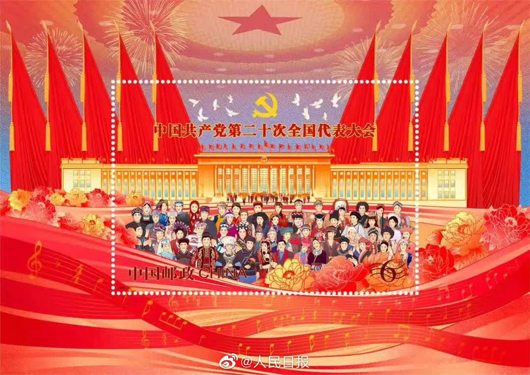 據新華社報道,中國郵政定於10月16日發行《中國共產黨第二十次全國代表大會》紀念郵票一套2枚,小型張1枚。郵票計劃發行數量為1390萬套,小型張計劃發行數量790萬枚。