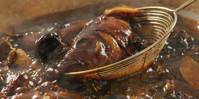 選優質草魚頭,魚頭重6-7兩最合適。在清水裏放入醬油、冰糖、桂皮、八角、花椒、香葉製作成3斤鹵水。將草魚頭洗凈然後放入預先製作好的鹵水,慢火滷30-45分鐘,即可完成製作,鹵出的魚頭惹味鮮香。還可以將鹵好的魚頭放入冰箱凍半小時,上桌前用熱鹵水澆一下,口感會更加好。
