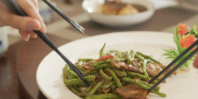 一筷子夾住豆角同腩肉