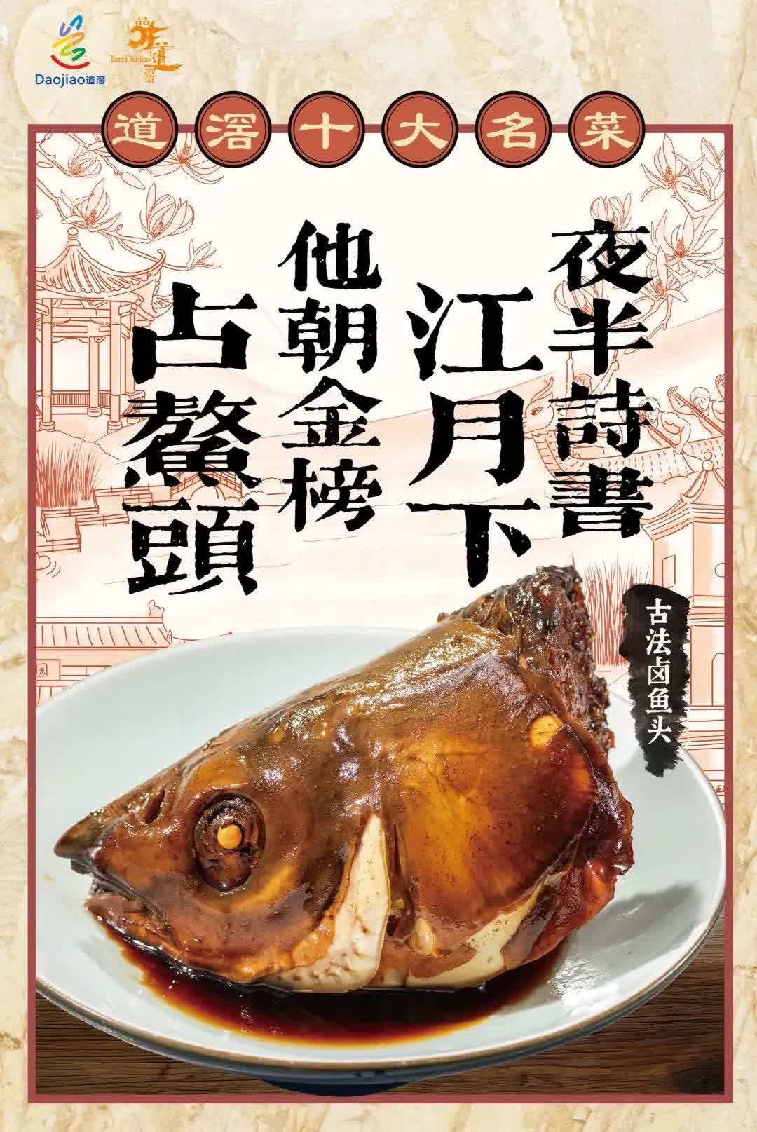 相傳清朝年間,一位道滘葉姓男子家境貧寒,常常需要捕些魚蝦幫補家用,勉強供兒子小葉讀書。他的一個叔伯看老葉父子勤勞刻苦,性格溫良,因此常常對他們施以援手。在小葉參加鄉試前夕,老葉意外捕到一條大魚。為了感謝叔伯的説明,老葉將大魚給這位叔伯送了過去。叔伯默默收下魚,當晚給小葉送去一筆不菲的盤纏,同時帶去的還有一道美味的鹵魚頭。叔伯說,這道菜的名字就叫做「獨佔鰲頭」,相信小葉一定能高中。果然,小葉中了舉人,生活由此改變。此後很多年,小葉一家人一直感念這位叔伯的恩情,同時也將這道「鹵魚頭」的故事傳頌至今。