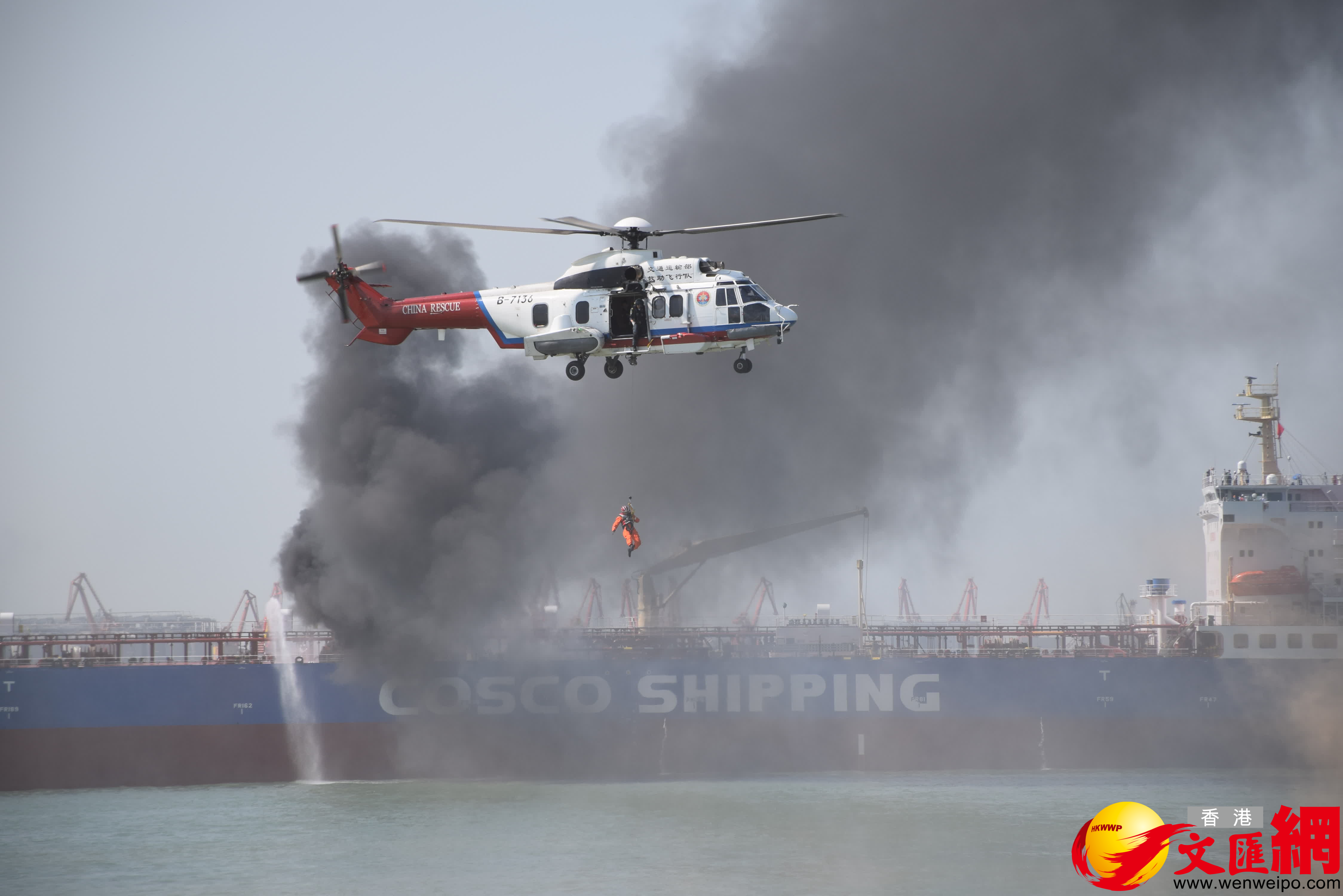 (香港文匯網記者 盧靜怡 廣州報道)海陸空「大練兵」今日(10月27日)上午在珠江口水域進行。這次「2022年國家海上搜救綜合演練」模擬兩艘船相撞後,人員落水,油船出現破艙溢油、船舶失控影響深中通道施工水域在建大橋安全等情形,各方海上應急救援力量合力開展救助,及時救起落水人員,清除水面溢油,控制失控船舶等。粵港澳三地海上應急救援力量合力開展救助。粵港澳三地共出動20家單位、28艘船艇、3架飛機、500餘人參與演練。我國首艘萬噸級海事巡邏船「海巡09」輪首次在國家級演練中亮相。