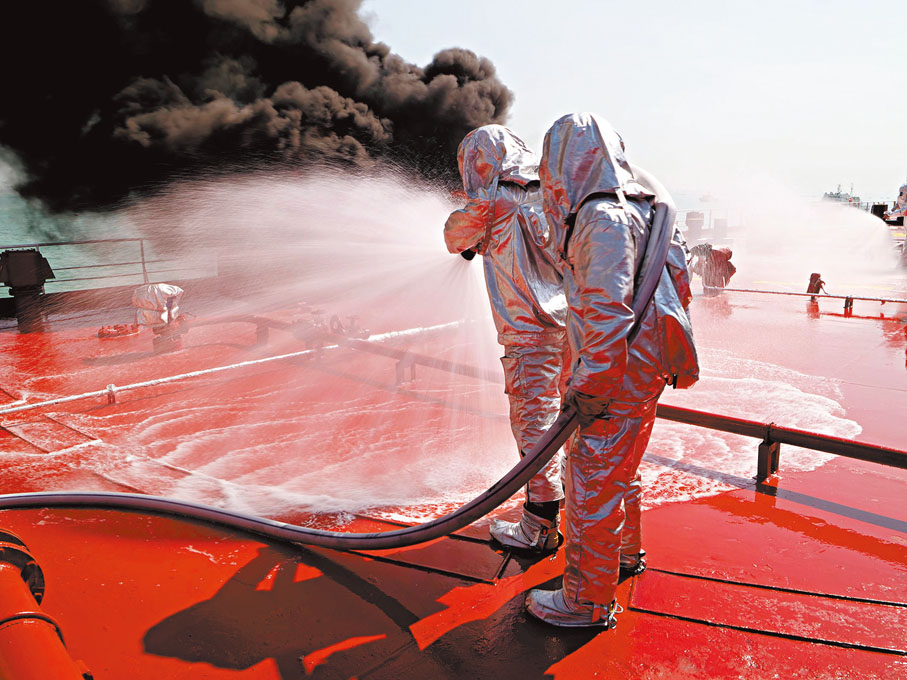 演練中,各方力量在海上搜救中心統一調度下馳援事故水域。演練現場除了搜救船隻外,還出動了無人機、無人船,它們精準投放救生筏、報告落水人員位置。海面上除了碰撞的油船冒出黑煙外,周邊海域還冒出了橙色的煙霧。原來,搜救船舶在確認落水人員位置後,還會在落水者旁投放橙色煙霧信號,指引直升機救援隊。