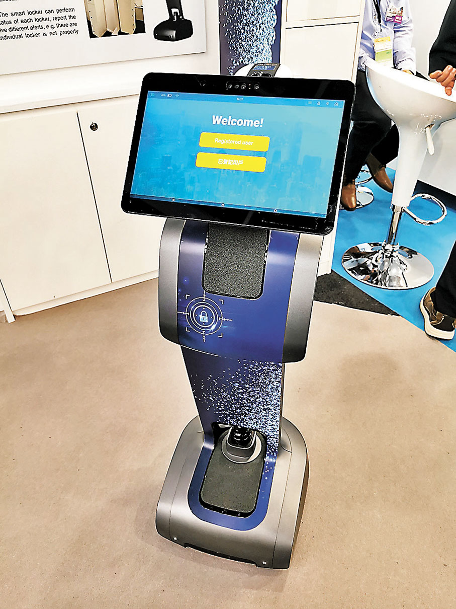 這個結合了智能儲物櫃、面容識別及構械人技術的機械人—智能接待機械人於接待處接待及指導訪客,為預先登記的訪客自動分配儲物櫃。接待機械人更會發聲指示及引導訪客前往智能儲物櫃,讓訪客與智能儲物櫃進行面容識別,開啟獲分配的儲物櫃使用。每個儲物櫃都設置了傳感器,能根據各櫃的使用情況進行自動分配,並向管理員報告佔用狀況及發出不同警示,如快將沒有足夠儲物櫃可供分配、個別儲物櫃未有完全關閉或被佔用的時間過長等。