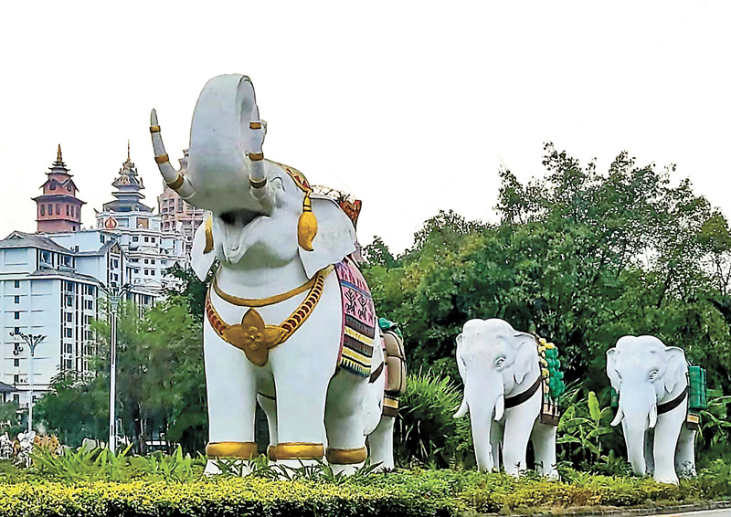 一出機場,景洪給我最強烈的印象是多民族風情特別濃郁,亞熱帶風光超級迷人。西雙版納全州常住人口130萬。世居的有傣族、哈尼族、瑤族、回族、壯族、景頗族、布朗族、基諾族、拉祜族、彝族、佤族、苗族和漢族共13個民族,少數民族人口有80萬,傣族是主體民族,有近34萬。景洪是傣族的聚居區,至今仍保留着自己獨特的語言、文字、風俗、建築特色和宗教信仰等。城中建築都是傣族民居和寺院風格,街邊廣場都有很多孔雀、大象和佛像造型的雕塑,因為傣族等民族崇拜大象孔雀,信仰佛教。街道兩旁、公園內外、房前屋後,都是生機勃發的熱帶植物。有「世界油王」油棕、「熱帶水果之王」菠蘿蜜、「南國美女」椰子樹,還有檳榔、柚子、芒果、香蕉和各種奇花異草、翠竹名木。真個是自然風光旖旎迷人,民族風情五彩繽紛。