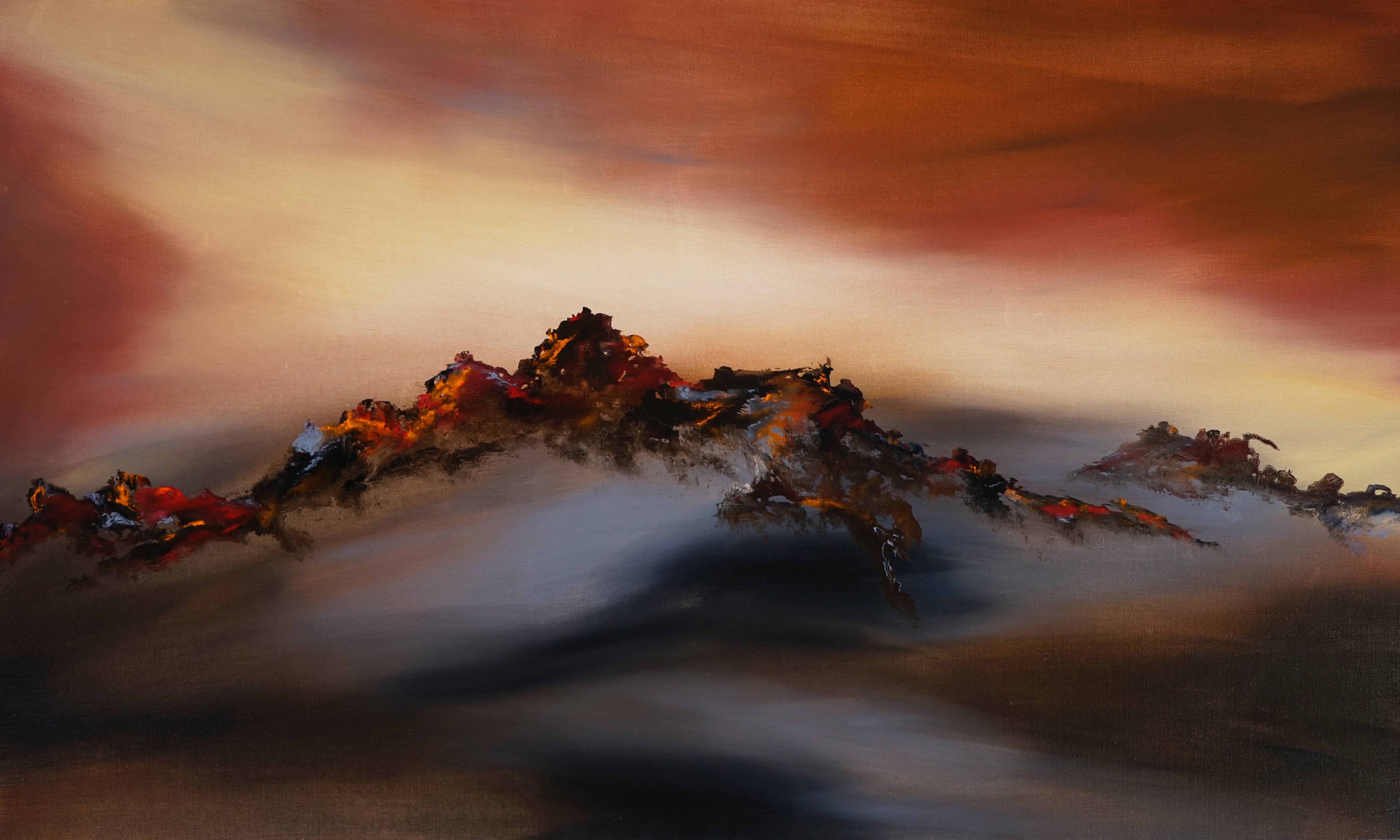 陸永安在展覽序言中說,「多年來我一直有一個心愿,就是用油畫的表現方式來向北宋三位山水畫大師——董源、李成與范寬的致敬。董源得山之神氣,李成得山之體貌,范寬得山之骨法,可以說,他們是中國山水畫的開啟者。致敬這個系列的每一位藝術大師,他們的作品光耀古今,也是我繪畫創作的底蘊。」