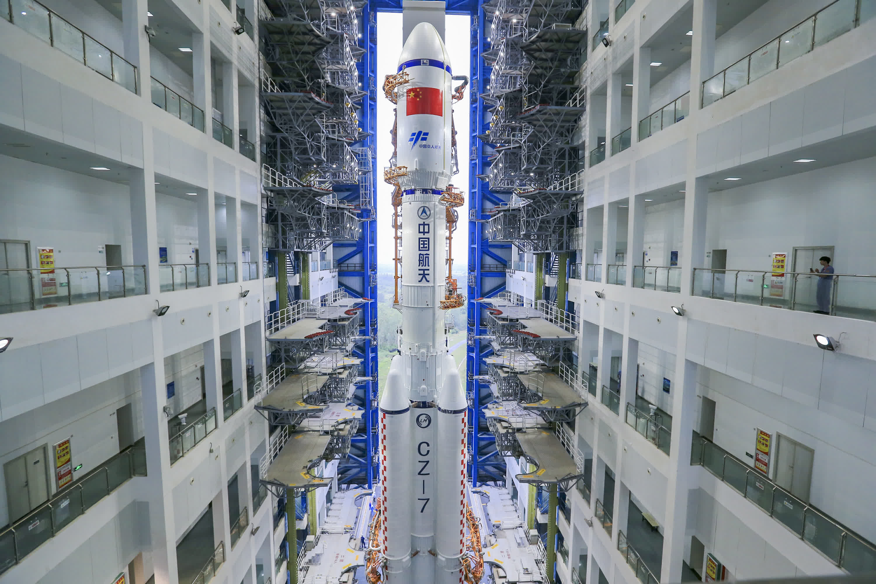 據新華社報道,天舟五號貨運飛船任務10日下午組織發射前系統間全區合練,目前各系統已經做好發射前準備工作。