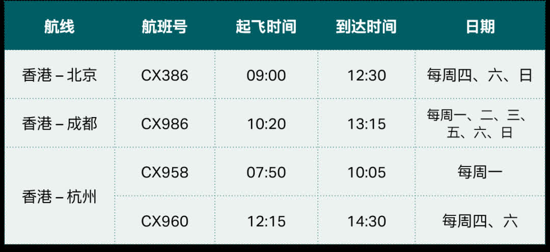 國泰航空陸續增加了多個航班,以滿足內地小夥伴們往返香港或經香港轉機前往其他目的地的出行需求。