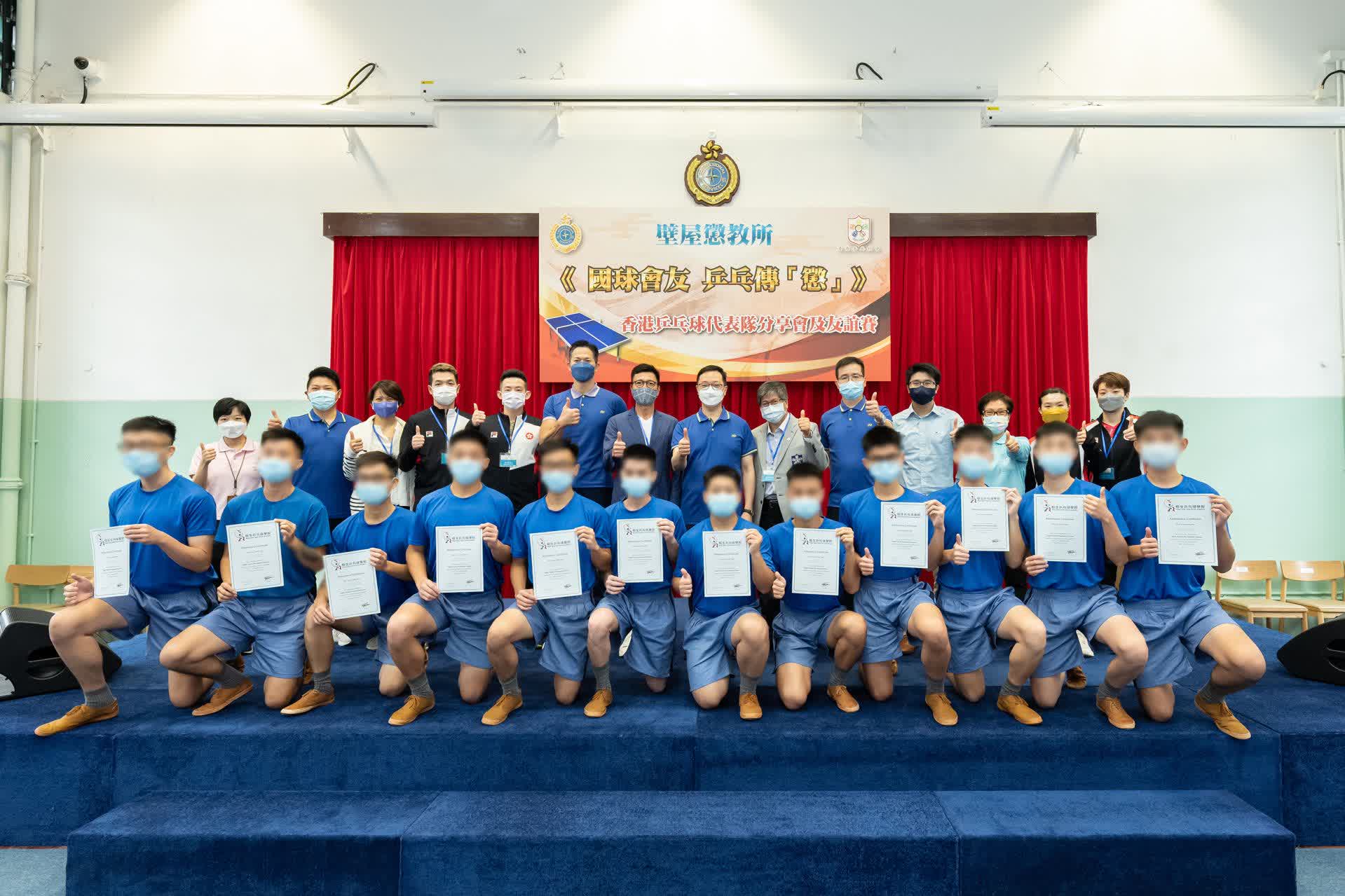 大公文匯全媒體報道:懲教署繼2017年後,再次邀請香港乒乓總會為在囚人士舉辦「乒乓球裁判先修課程」。12名有志出任乒乓球裁判的青少年在囚人士順利完成課程,今日(12日)獲頒證書。香港乒乓球代表隊4名成員(杜凱琹、李皓晴、黃鎮廷及何鈞傑)出席了證書頒發典禮,並與在囚人士交流和進行友誼賽。