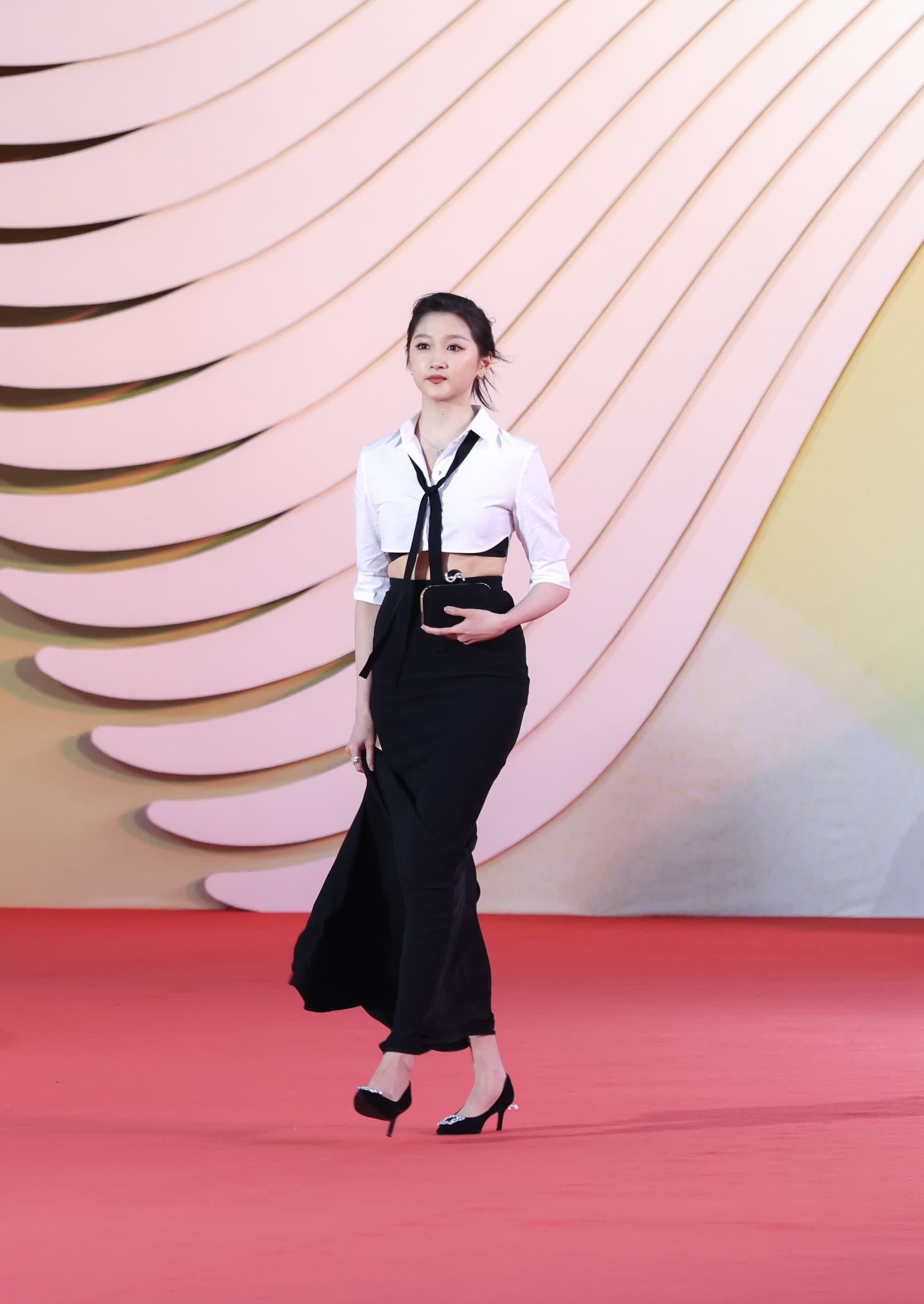 楊穎紅毯上手持仙女棒,身着白紗立體繁花抹胸高開叉連衣裙,優雅飄逸,宛若仙境精靈。萬茜則是一身紅色露背長裙,氣場強大。婚後久違露面的高圓圓則一身高級復古裙,扎着高馬尾,好身材展現得淋漓盡致 。一直廣受關注的關曉彤,今次紅毯身着露腰白襯衫搭配魚尾裙,系黑色領結、瘦腰大長腿,摩登女郎既視感。