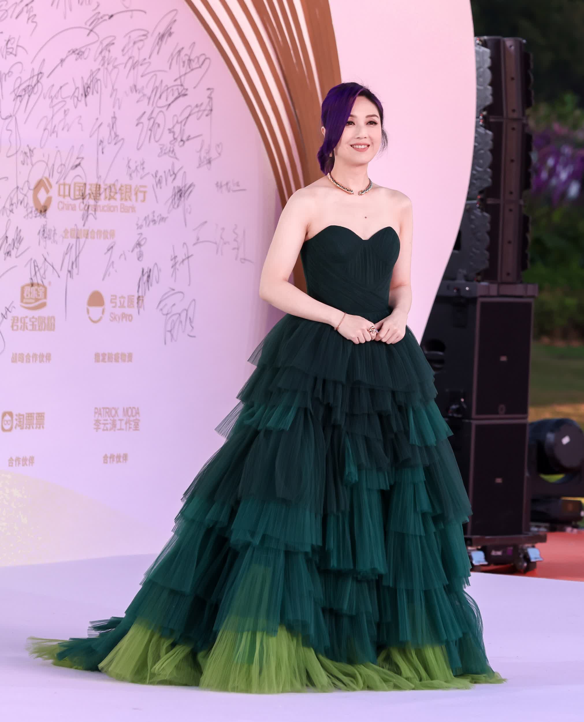 港星楊千嬅一身墨綠色長裙亮相紅毯,港風十足。港星文詠珊今年作品不斷,今次她穿的是深V綠色緞面連衣服,無論是顏色還是設計都十分亮眼,走在人群中十分顯眼。