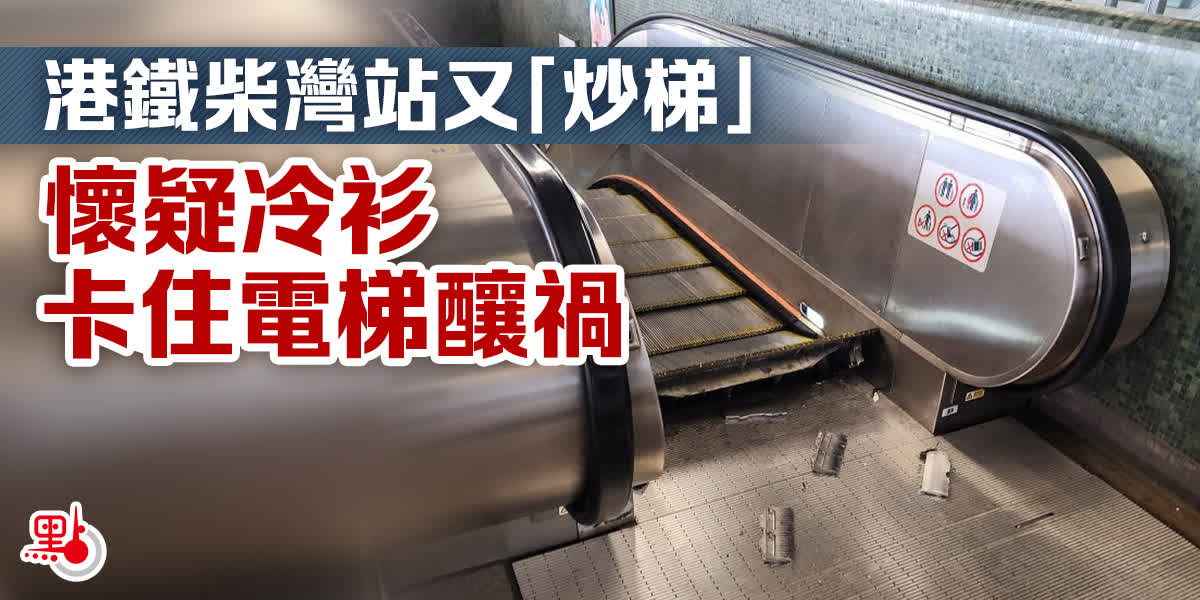 據悉,柴灣站內一部由大堂上月台的扶手電梯懷疑被一件冷衫卡住而故障,多組梯級與平層梳齒發生碰撞,金屬片拱起爆開。