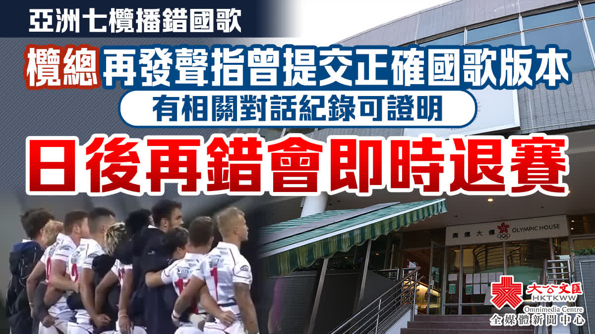 香港欖球總會今日(15日)發聲明指,亞洲欖球總會上月23日向總會確認,《義勇軍進行曲》為正確中國國歌,若港隊進入系列賽決賽會播放有關歌曲,並有相關對話紀錄。當時證實國歌正確,有關版本已在上月底的泰國賽事中播出,並預計國歌會用於其他系列賽的決賽中。過去25年港隊參與的亞洲欖球賽事中,包括去年10月在韓國同一場地舉行同一比賽,以及今年7月在當地舉行的十五人制賽事,均播放《義勇軍進行曲》為國歌,香港欖總未有收到任何通知,指大會會擅自在網上尋找國歌,或者播放未經認可的歌曲。