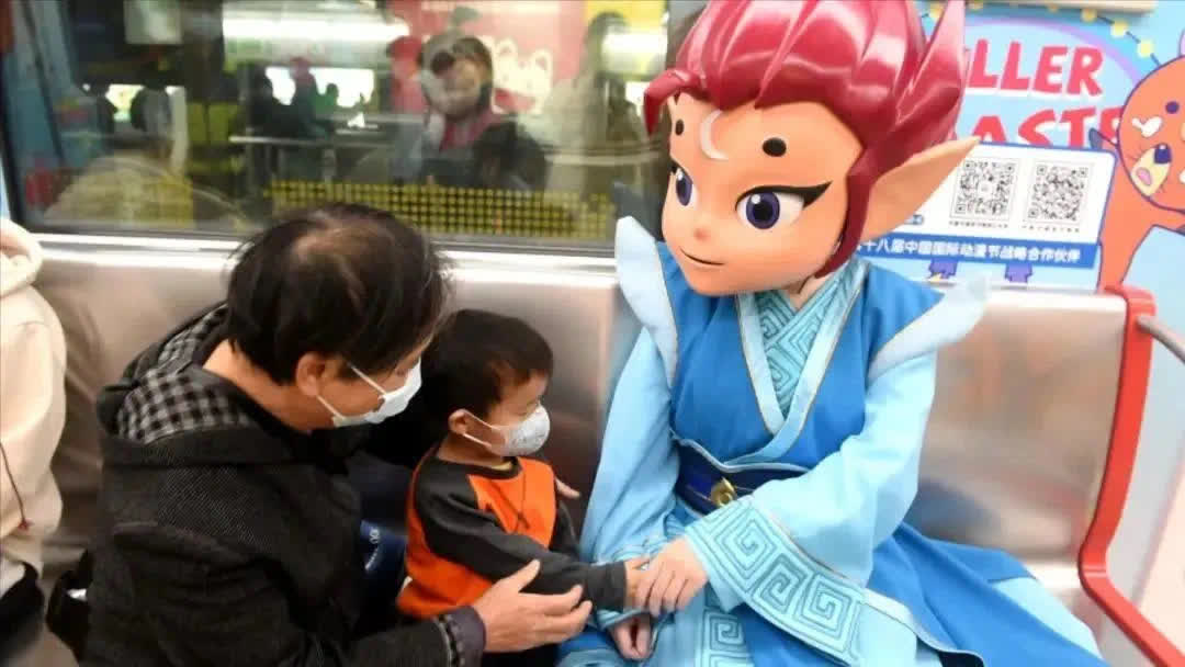 據悉,為迎接11月24日-27日在浙江杭州舉行的第十八屆中國國際動漫節,杭州特意布置了這輛以「國漫十八載,一起向未來」為主題的動漫專列。專列共6節車廂,每節車廂都有不同主題,掃一掃地鐵上的二維碼,還可以提前獲悉本屆動漫節的相關活動。