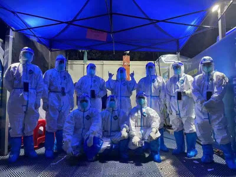 參與轉運工作的黃梓威最忙時曾試過早上8點半工作,一直忙到凌晨2點多才結束。黃梓威需要把陽性個案從不同的樓宇裏帶下車點。「印象比較深的是,有一戶人家一家9口都感染了,我幫着他們抬行李,一趟又一趟地上下樓,點對點將他們送到上車點。這中間不停歇地忙,腦子是沒空思考其他事情。」跑上跑下過程中,防護服包裹下的身體不斷地冒熱氣,汗水順着臉頰往下滴,等他凌晨回到所住的隔離酒店時,衣服和褲子濕透了都是常事。