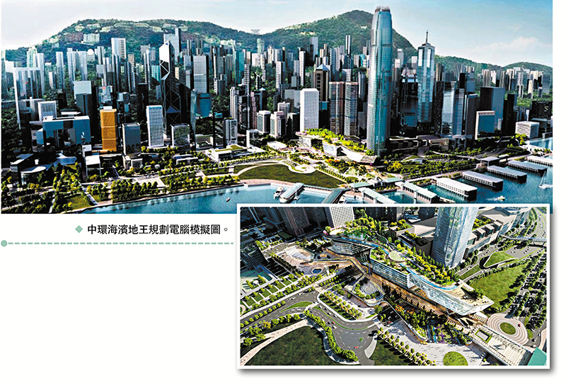 擬議發展將透過空中平台連接3座向海濱遞減建築物高度的商業大樓,同時帶來大量的綠化及公共空間。總樓面中最大部分來自商業/零售樓面,佔約92.33萬方呎,辦公室樓面則約69.13萬方呎。另外,項目亦設有約24.56萬方呎非商業樓面,提供公共交通設施及公共停車場、政府、機構或社區設施(包括重置受影響的郵政總局和公共廁所以及重建天星小輪鐘樓)。