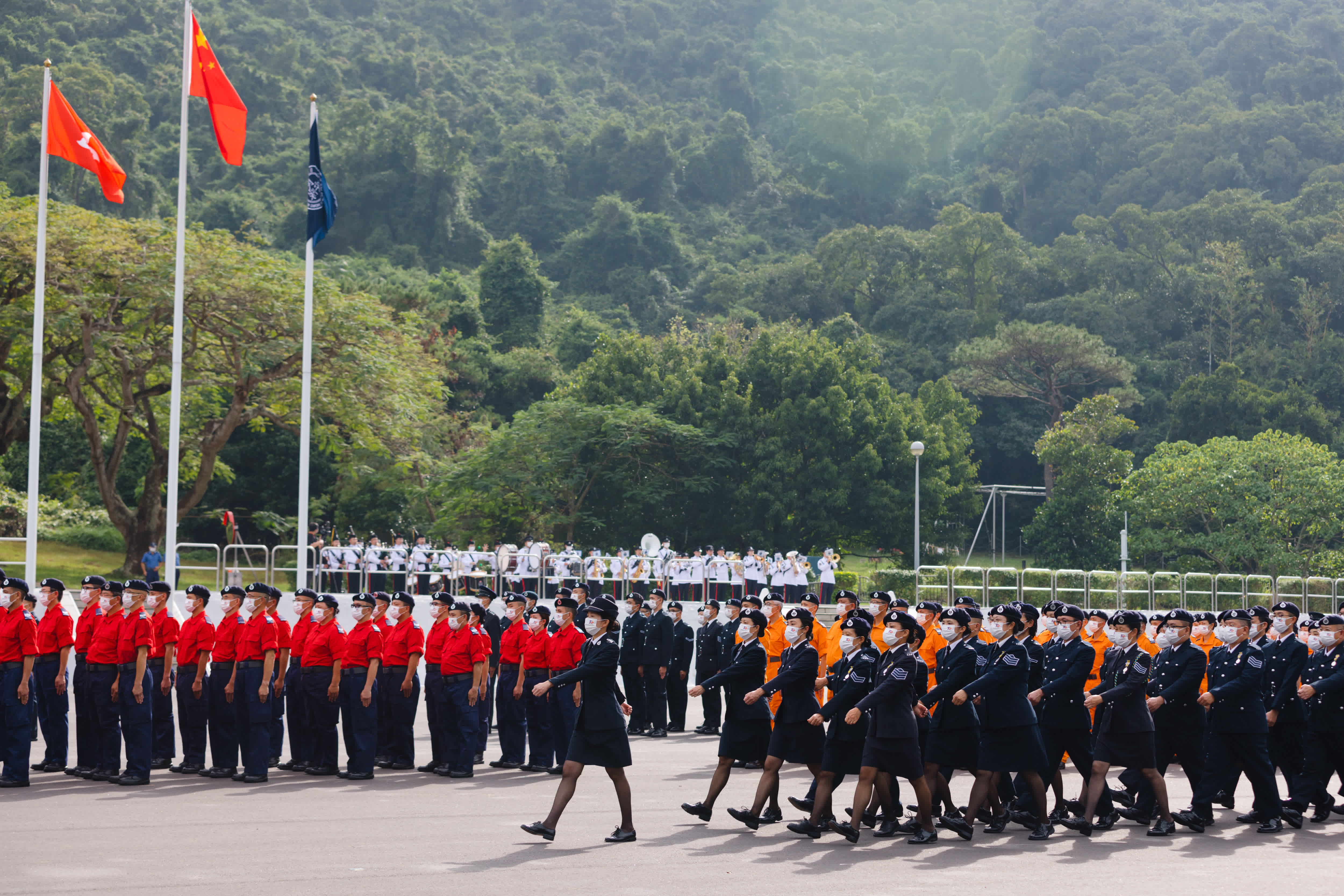 大公文匯全媒體報道:民眾安全服務隊(民安隊)今日(27日)於香港警察學院舉行了「慶祝香港特別行政區成立二十五周年及民安隊七十周年紀念大會操」,由政務司司長陳國基主持儀式並檢閲會操隊伍。其他出席嘉賓包括立法會議員、政府決策局、部門及機構的代表,以及約800名民安隊現職及退休長官和隊員。為彰顯國民身份認同及愛國情操,民安隊於同日起全面採用規格嚴謹的中式步操,並首次在會操上展示。
