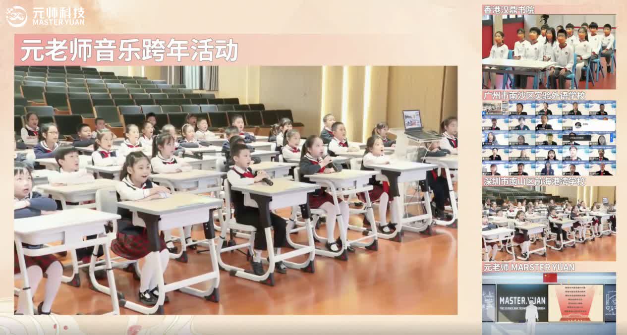 該課程以AI智能數字技術賦能教學實踐,聯動粵港澳大灣區三地學校近150名師生齊聚線上課堂。據了解,此次「2022 灣區少年唱響元宇宙跨年新時代」活動由廣州市青竹教育公益基金會與深圳市元師科技有限公司聯合舉辦,通過元宇宙應用於教育發展,打造未來教育新範式。與傳統直播課不同,本次活動在智能數字技術的加持下全新設置虛擬教學空間。課堂上,元老師以「虛擬技術+音樂表演」的教學形式,為三地學生帶來耳目一新的課堂體驗。學生們通過與「元老師」學唱《我愛你中國》,在動人旋律中感受祖國的山川美景、在演唱中對祖國深情告白。
