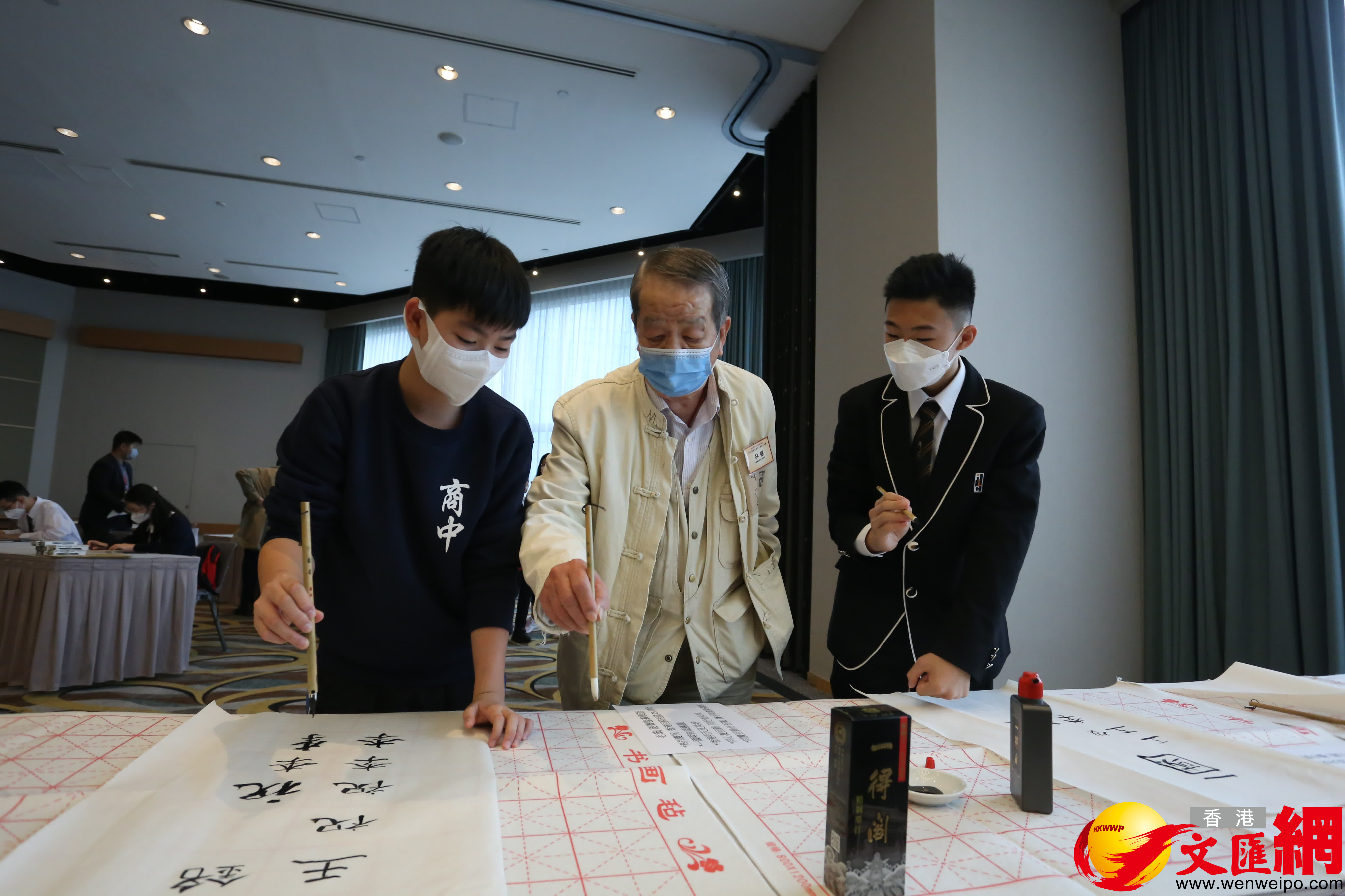 頒獎禮除進行頒發儀式外,同時也在現場展出毛筆組、硬筆組的特等獎、一等獎、二等獎、三等獎及優異獎共138幅作品。縱觀獲獎作品,有振奮民志的《少年中國說》、氣勢恢宏的《江山祖國聯》、韻味無窮的《佛遺教經》,以及胸襟豪邁的《沁園春·雪》等等。香港青少年以書寫經典文學、摘錄現代散文、自作詩詞聯賦、抄寫黨史名言,為祖國獻上喜賀香港回歸廿五載的祝福。與此同時,大會安排了一場筆會,邀請中國書協香港分會的五位書法家林清樂、林樾及馬潤憲,為同學現場指導和交流。