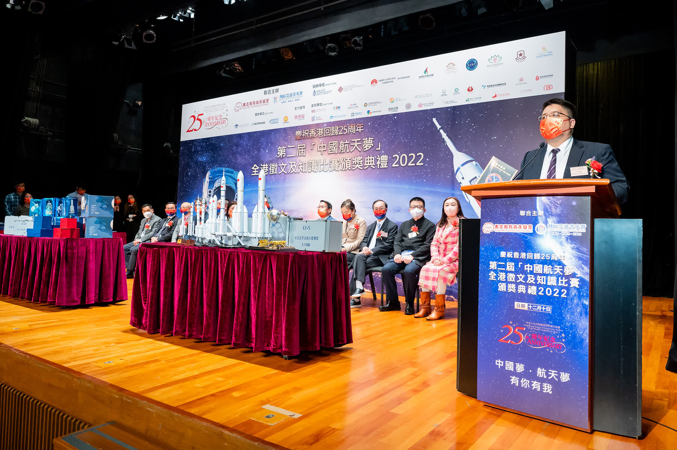 大公文匯全媒體報道:為向香港市民及青少年推廣中國航天精神及航天科普教育,「勵志教育青年基金」和「灣區莞港菁英薈」於昨日(10日)假座香港理工大學蔣震劇院舉行了「慶祝香港回歸25周年—第二屆『中國航天夢』全港徵文及知識比賽頒獎典禮2022」,並為兩個比賽近60名得獎者及積極參與的學校頒發證書及航天紀念禮品,大會開幕式更邀請了哈爾濱工業大學航天學院的李傳江教授透過預錄影片與現場超過230位來賓及得獎者進行分享。
