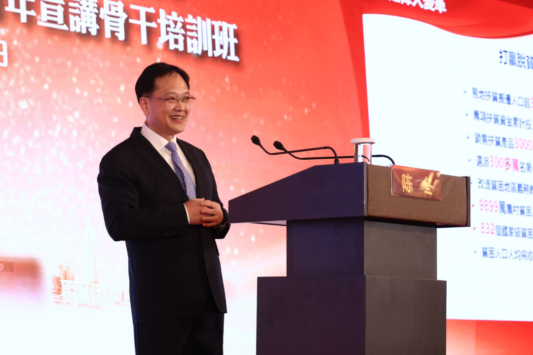 12月10日,中央政府駐港聯絡辦副主任陳冬出席黨的二十大精神香港青年宣講骨幹培訓班結業禮,以「香港青年如何宣講好黨的二十大精神」為題,向現場近300名青年代表進行宣講。