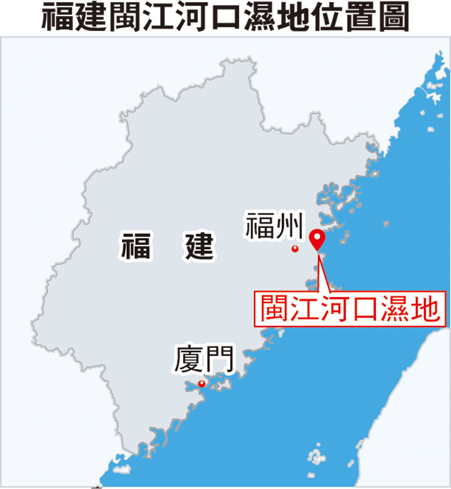 地處福州馬尾區與長樂區交界處閩江入海口區域的閩江河口濕地,是福建省最大的原生態河口濕地,總面積2,381.85公頃,約5.6萬個籃球場大小,與台灣馬祖(連江縣)隔海相望。在全球9條候鳥遷徙路線中,閩江河口濕地處於擁有最多候鳥種類和數量的東亞—澳大利西亞遷徙路線的中間地帶,是遷徙水鳥重要驛站地、越冬地和燕鷗類重要繁殖區。
