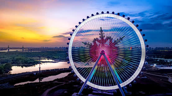 據了解,第24屆哈爾濱冰雪大世界園區總佔地面積81萬平方米,其中冰建區60萬平方米,停車場21萬平方米,建成上百個冰雪景觀。其中新建的哈爾濱地標項目——雪花摩天輪,不僅僅是冰雪大世界的亮點,更是哈爾濱巍然屹立的「冰城之眼」,成為讓人最為期待的體驗項目。雪花摩天輪高120米,48個可以乘坐十人的轎廂,有豪華內飾的轎廂24個,同時還有商務主題、親子主題、愛情主題、KTV主題的轎廂,豪華內飾廂有6個打造了透明玻璃底部的吊艙,可以想像的刺激。還有500米歷屆最長的超級大滑梯,暢玩冰上單車、雪圈、爬犁、冰尜等娛樂項目,也定讓遊人不虛此行。