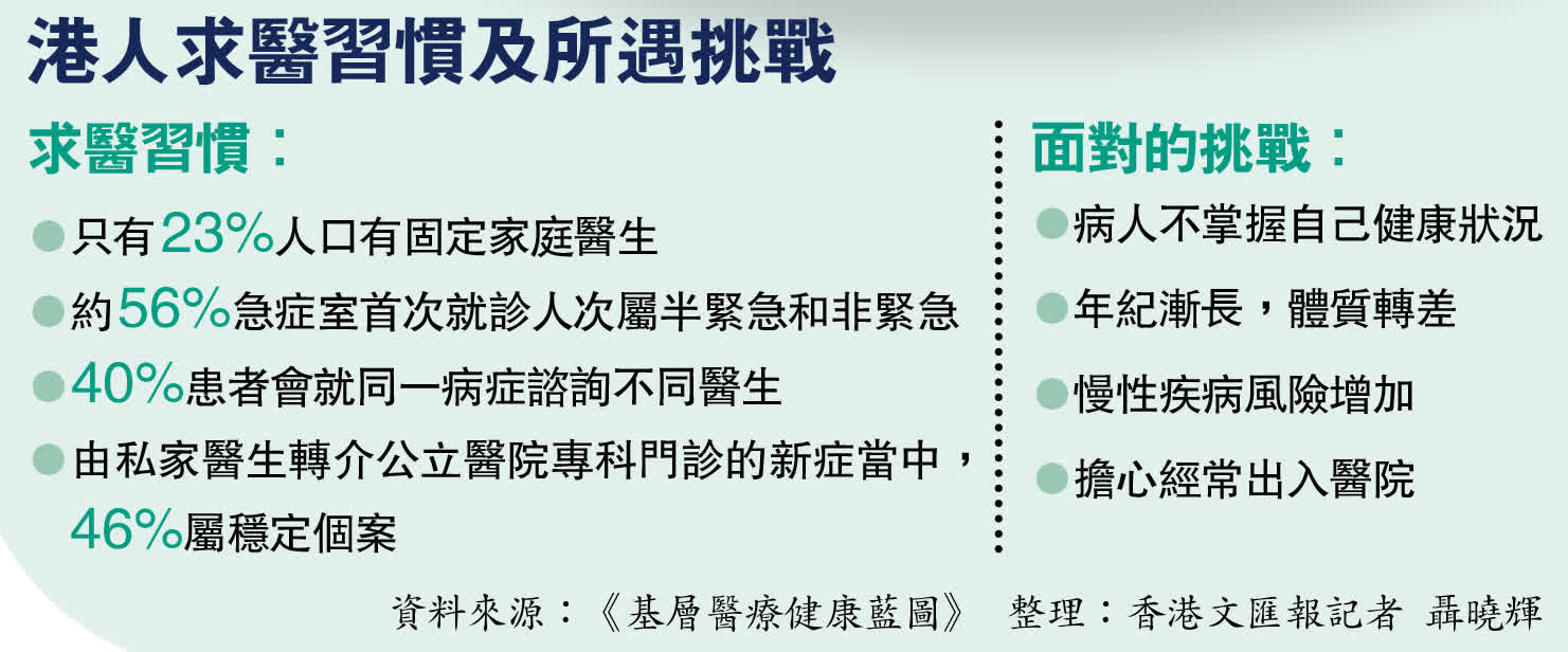 (香港文匯報記者 聶曉輝)香港特區政府昨日公布《基層醫療健康藍圖》,為強化本港的基層醫療健康系統制定發展方向及策略,期望透過一系列改革措施,將本港目前「重治療、輕預防」的醫療體制,逐步轉為以預防為重、社區為本、家庭為中心、早發現早治療為策略,並以改善市民整體健康狀況、提供連貫全面的醫療服務、建立可持續的醫療系統為願景。該藍圖的其中一項措施是推出「慢性疾病共同治理計劃」,資助市民經家庭醫生接受診斷及管理糖尿病、高血壓等目標慢性疾病,預計明年第二三季推出,但資助金額要留待明年預算案公布。醫務衞生局局長盧寵茂強調,藍圖勾畫的是涉及未來數十年的發展與重大改革,但會分階段推出短、中、長期措施,並會設機制量度成效。