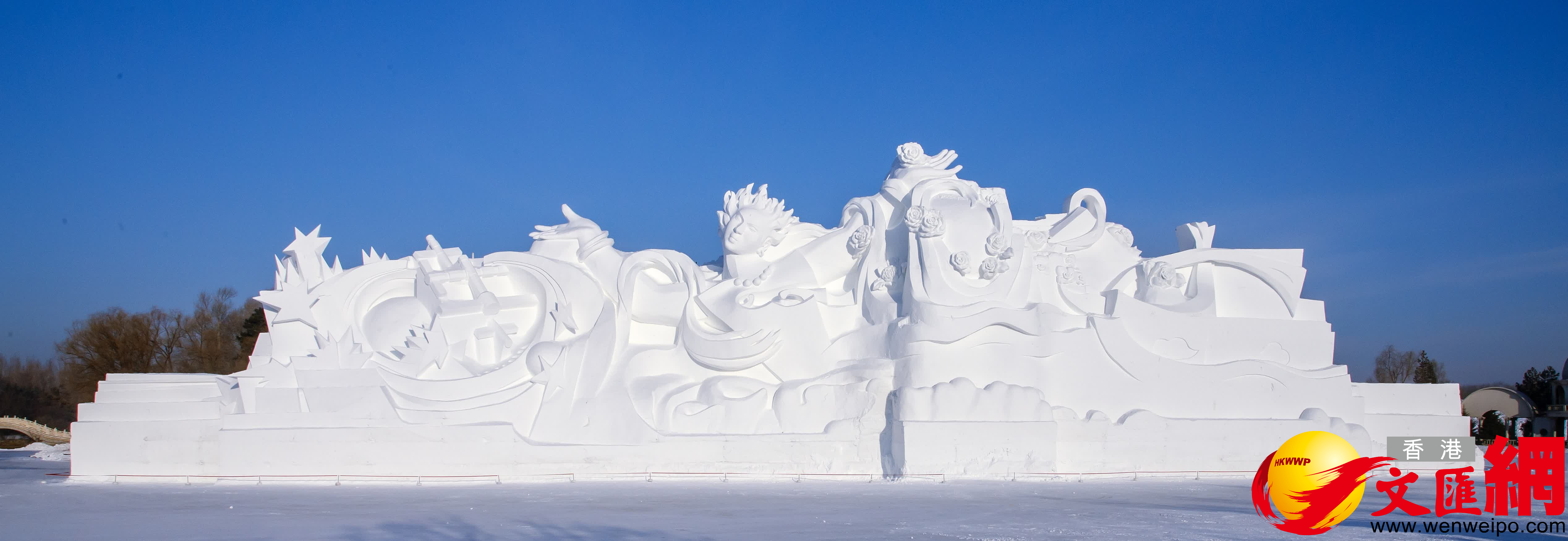 (香港文匯網記者 王欣欣 哈爾濱報道)隨着百米長、創歷史之最的主雪塑《逐夢》落成完工,北方著名冰雪樂園——第35屆中國·哈爾濱太陽島國際雪雕藝術博覽會今日盛裝預開園。本屆雪博會以「冰雪之都 夢雪奇緣」為主題,佔地面積154萬平方米,總用雪量10.5萬立方米,總雪雕數量160餘處,亦創歷史之最。