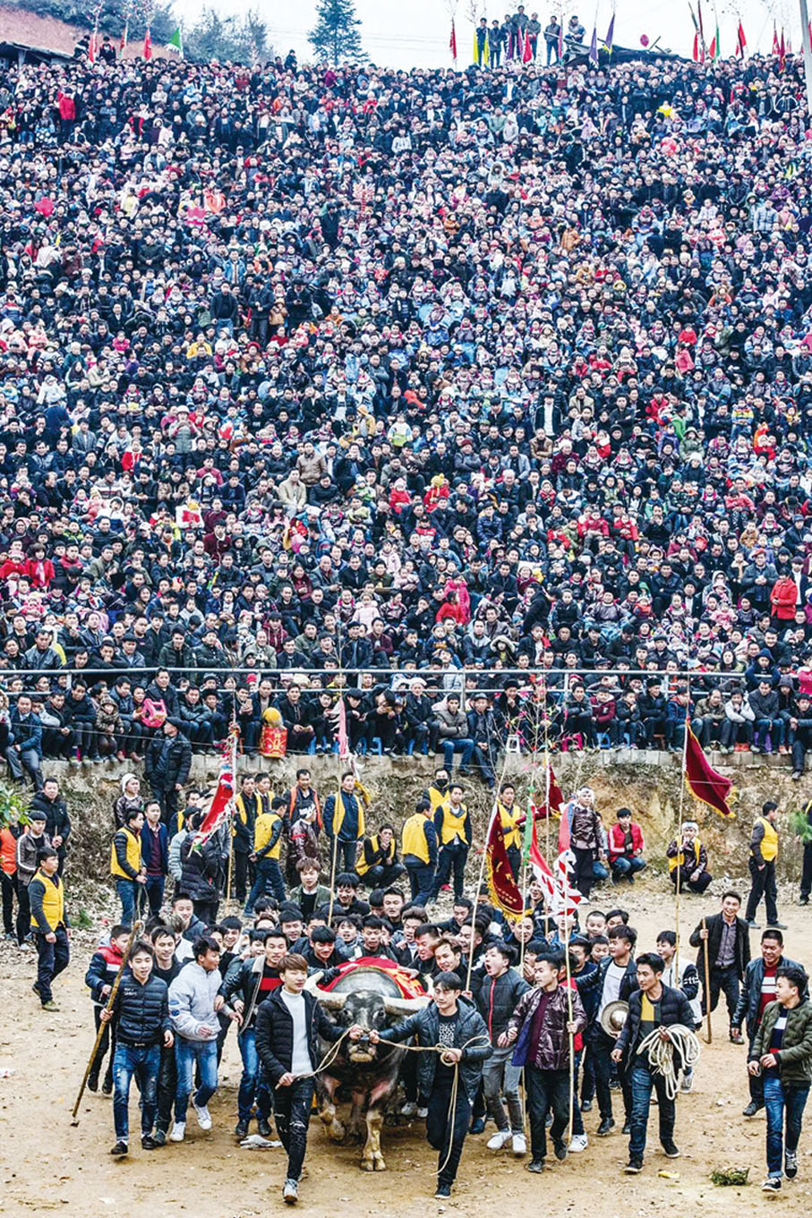 在這樣珍貴而隆重的節慶裏,苗族同胞或盛裝出席祭祀祖先;或進行各種獨特的比賽。鬥牛,是節日的重頭戲,關乎族人榮耀。有經驗的擇牛人要看腰身析牛角,識牛齒別牛眼,觀皮毛察腳趾,才能選出被稱為牛王、牛聖的獲勝好牛,為主人和村寨帶來榮譽。這樣的鼓藏節,歡歌盛舞,熱鬧程度堪比一場世界級的運動會。