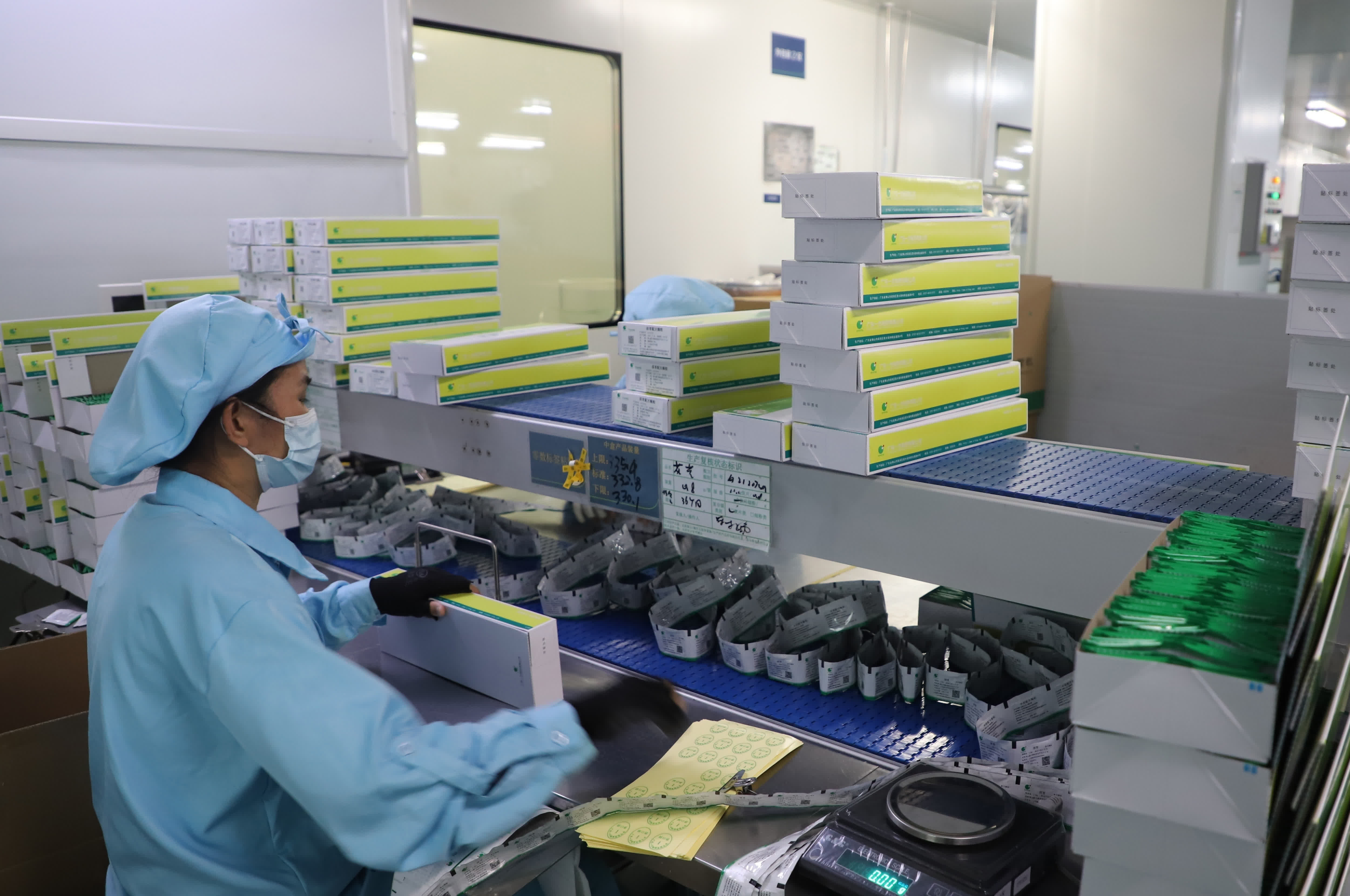 「目前公司生產中心已啟動生產崗位人員24小時倒班制,同時對化濕敗毒顆粒包裝生產線進行擴充,由1條生產線增加到了3條。」廣東一方製藥常務副總經理張軍表示,公司從12月初至今已實現總計300餘萬袋化濕敗毒顆粒供應,目前其日產能為近90萬袋。「公司正加班加點,做好各方面保障,預計到本月底,日產能可達到200萬袋左右」。