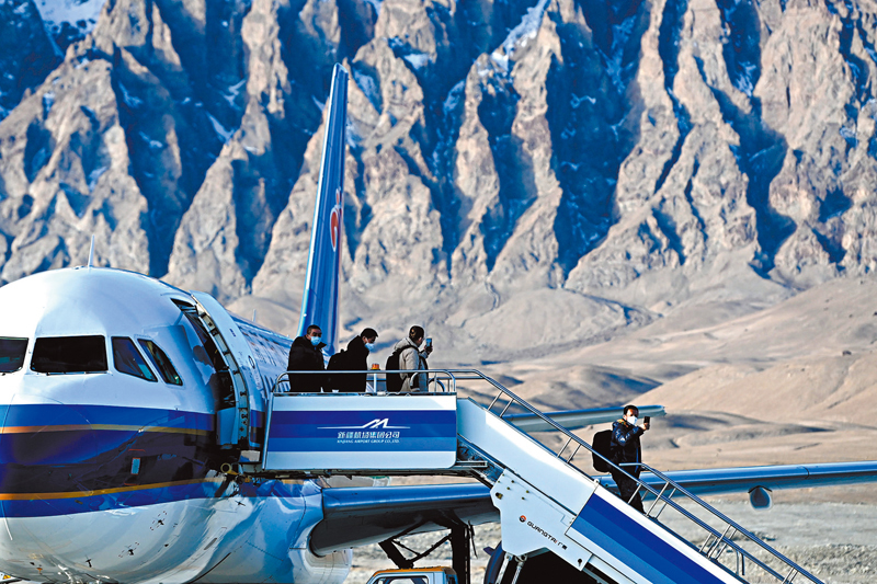 香港文匯報訊 據新華社報道,23日10時59分,一架自烏魯木齊起飛的CZ5193次航班平穩降落在塔什庫爾干紅其拉甫機場,雪域高原帕米爾迎來首批「空中來客」。群山環抱之間,機場航站樓造型宛如一隻展翅的雄鷹,矗立於冰川腳下。