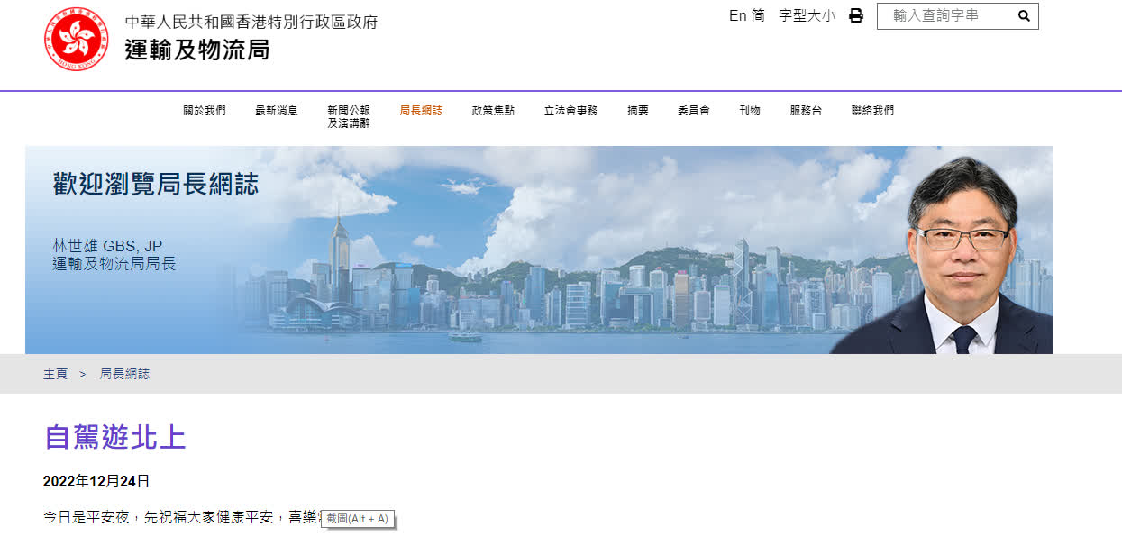 林世雄在網誌中提到,爭取於明年3月或之前公布「港珠澳大橋港車北上不設配額計劃」(「港車北上計劃」),並於2023年內實施,預計45萬私家車的車主和乘客可受惠。