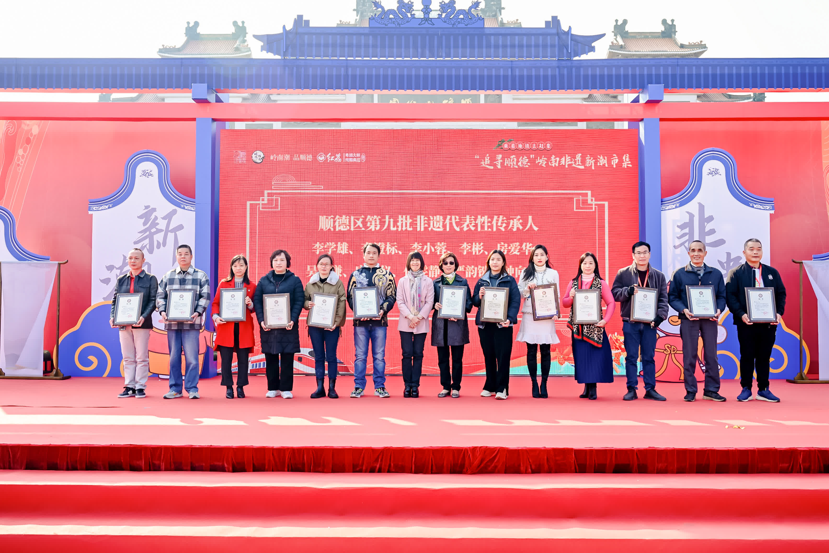 現場,主辦方舉行了順德區非遺協會成立儀式,「校園非遺課」贈書儀式,區級非遺項目、基地、代表性傳承人授牌儀式,以及發布順德區非遺代表性傳承人搶救性紀錄片。與會領導嘉賓為區級非遺項目、基地、代表性傳承人授牌。其中第九批區級非物質文化遺產代表性項目代表性傳承人共25人。百年老店李禧記第四代傳人、大良蟲崩?製作技藝傳承人李學雄就在其中,他還帶來了非遺特色產品參加展示活動。