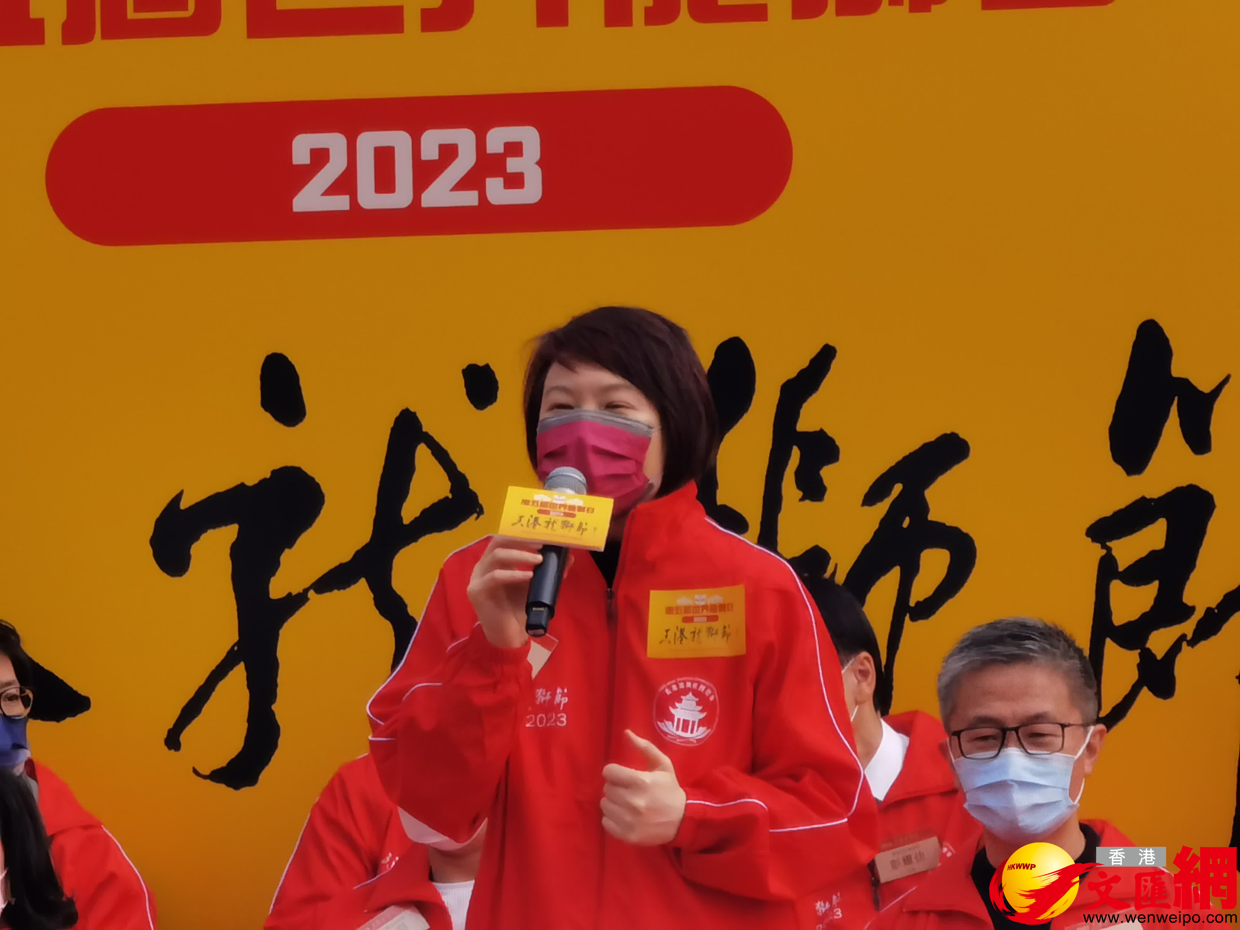 立法會議員、民建聯主席李慧琼在致辭中說,今次龍獅節具備三重意義,一是龍獅節的回歸是社會復常的新開始,新一年元旦日因龍獅節打頭陣而增色不少;二是1月8號是大家熱切期待的通關日子,期待通關後往來經商更便利,也讓更多家庭能夠團聚;三是香港是中外文化交流中心,要講好香港故事、講好中國故事,龍獅文化都是其中很重要的一部分,好開心見到現場一代代年輕人將龍獅文化傳播下去,期待大家共同講好中國故事,將龍獅文化進一步發揚。