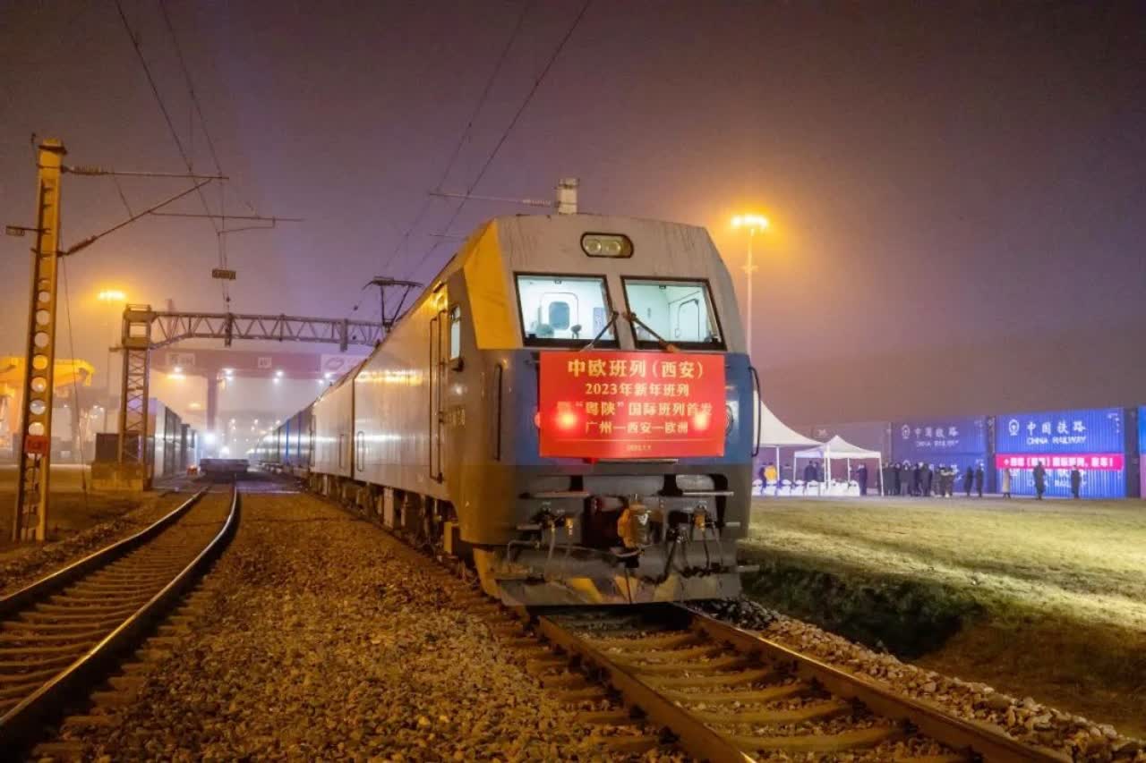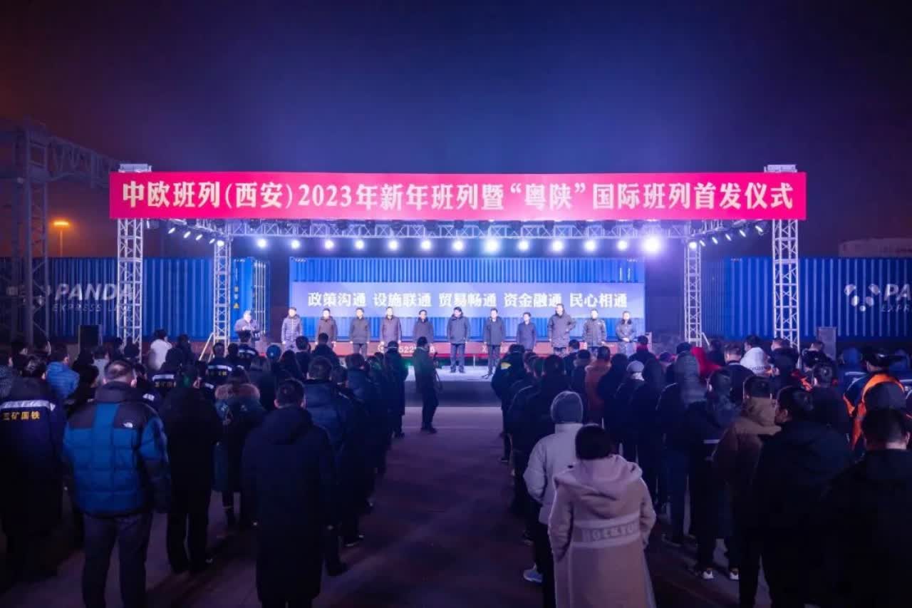 (香港文匯網記者 李陽波 西安報道)「『粵陝』國際班列,發車!」2023年1月1日0時,伴隨着新年的鐘聲,滿載着來自珠三角地區生產的家電、傢具和日用品等貨物的X8489次中歐班列,從西安國際港站緩緩駛出,一路向西開往歐洲,這也標誌着中歐班列長安號2023年新年班列暨「粵陝」國際班列正式開行。該專列的開行,實現了粵港澳大灣區和中歐班列長安號的快速鏈接,為粵港澳大灣區和西北外貿企業開闢了一條新的快捷出口通道。