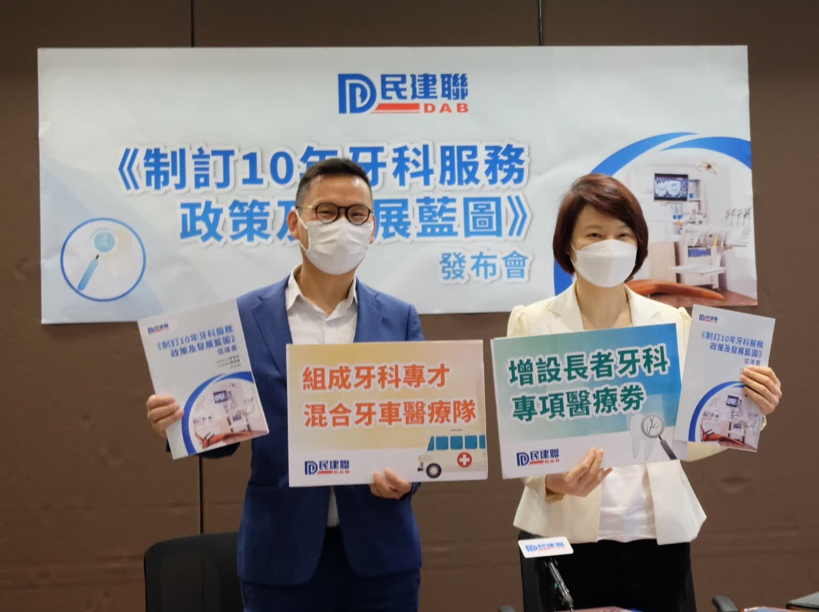 大公文匯全媒體報道:民建聯主席李慧琼、立法會議員陳恆鑌今日(6日)發表《牙科服務發展藍圖暨公營牙科服務政策倡議書》,敦促政府盡快展開全面牙科政策檢討,釐訂出短中長期措施,解決目前牙科護理服務及人手嚴重不足的問題。民建聯建議政府與非牟利機構合作,成立結合牙醫及牙科治療師的團隊,為有需要的地區提供流動牙科護理車服務,以減低牙醫人手不足的壓力及服務提供的靈活性;長遠而言,政府應把牙科醫療服務納入常規公營醫療系統。