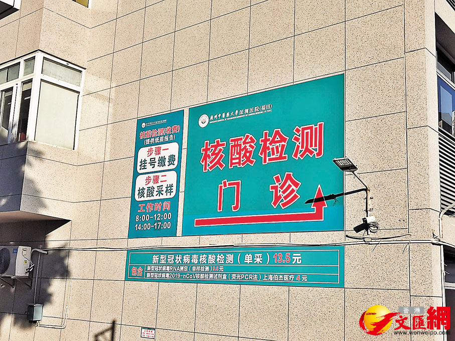 在廣州中醫藥大學(深圳)醫院,核檢門診單獨設於科教樓一樓,有獨立的門可與院外相連,核酸採樣點門口設置有3台核檢自助繳費機,內地市民可直接憑內地身份證,在該繳費機上掃碼繳費。香港文匯報記者見到了正在向護士諮詢如何繳費的港人張先生,他因工作需要急於得到核檢陰性報告,聽說現在只有醫院能做核檢,就乘的士來到了距離最近的廣中醫深圳醫院。