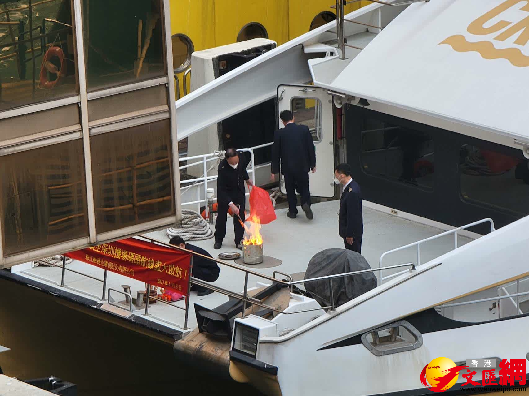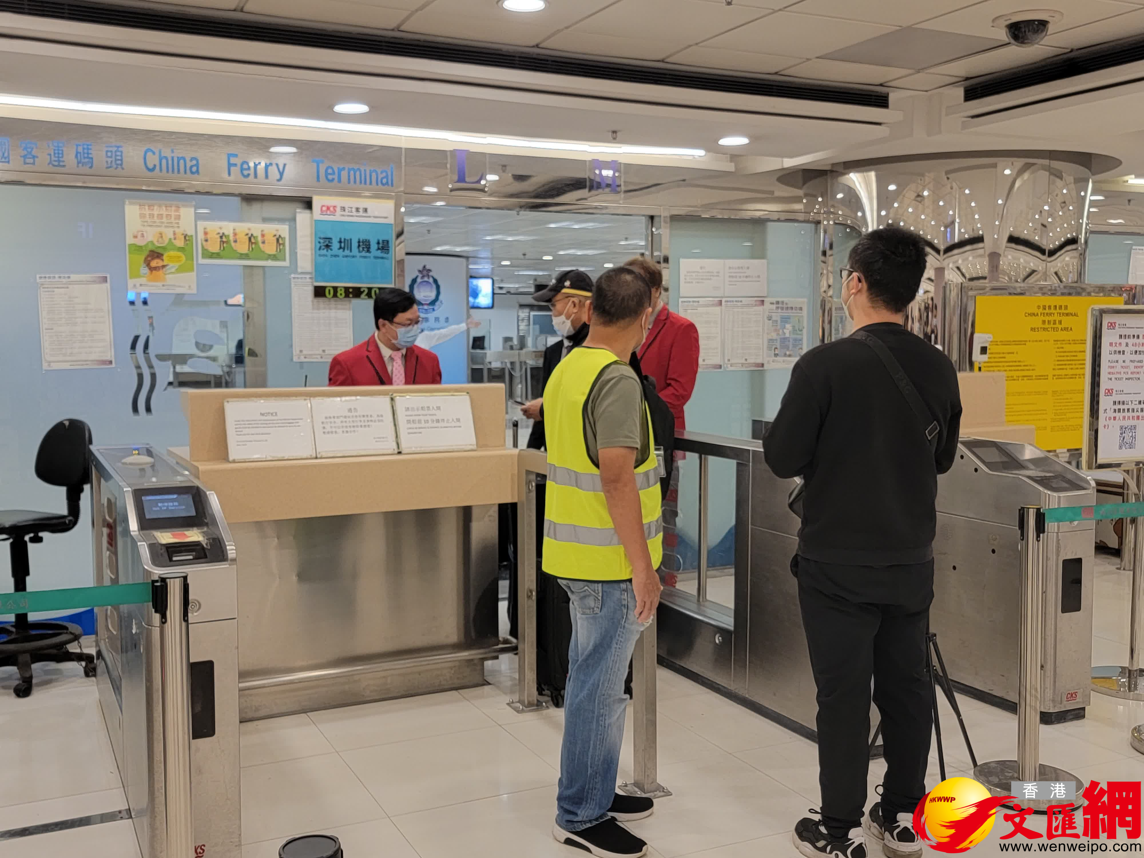 大公文匯全媒體記者馮沛賢報道:今日(8日)是香港與內地通關首日,尖沙咀中港城中國客運碼頭重新運作,為今早首航舉行拜神儀式。首日運作大致順暢,趕早班船的旅客有序過關。