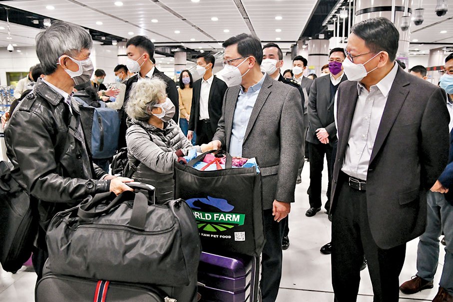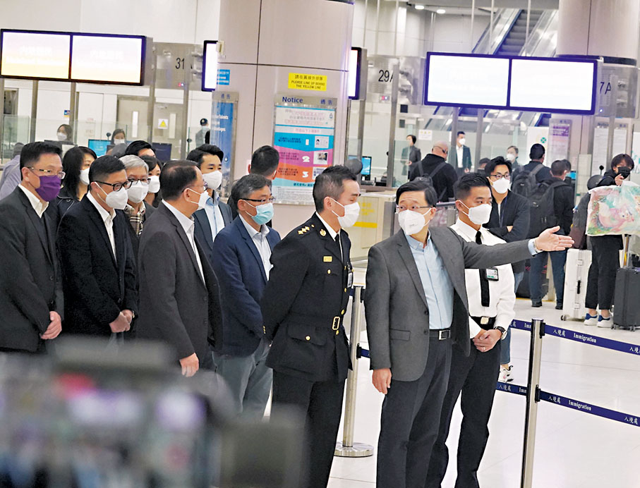 香港特區行政長官李家超昨早率同多名司局長到落馬洲支線管制站視察,了解香港與內地首日恢復免檢疫通關後市民過關情況。李家超指各口岸整體運作良好,市民過關流程暢順,強調通關必須要有序、安全、順暢,特區政府會密切留意情況,並與內地相關單位保持溝通,檢視春節前後安排以便作出整體部署,務求在穩妥可控形勢下盡快實現全面通關。消息指,港深兩地會在實施通關後一周內,不遲於本月15日會就首階段整體實施情況進行分析,在雙方達成一致意見基礎上,研究安排實施第二階段復常通關安排。◆香港文匯報記者 文森