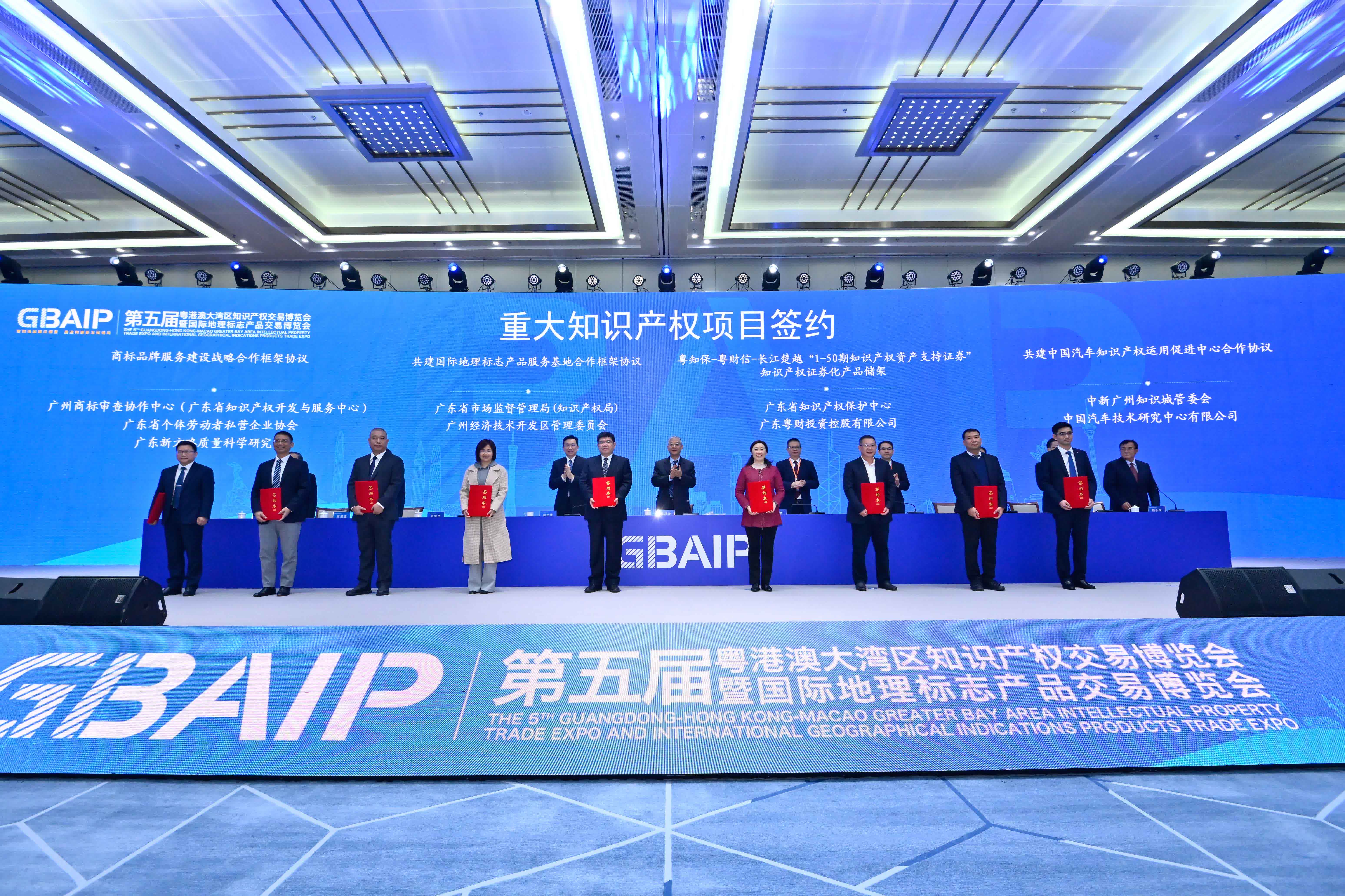 「第五屆粵港澳大灣區知識產權交易博覽會」暨國際地理標誌產品交易博覽會,由廣東省市場監督管理局(知識產權局)、廣州市政府、香港特別行政區政府知識產權署、澳門特別行政區政府經濟及科技發展局共同舉辦。大會全面突出知識產權交易特色,豐富地理標誌產品交易活動,加快推動知識產權價值實現,助力粵港澳大灣區建設,搭建知識產權國際合作平台。