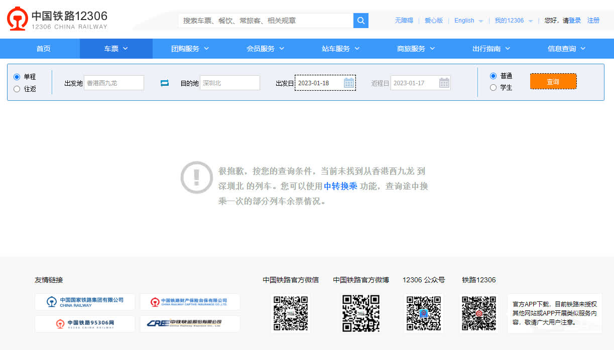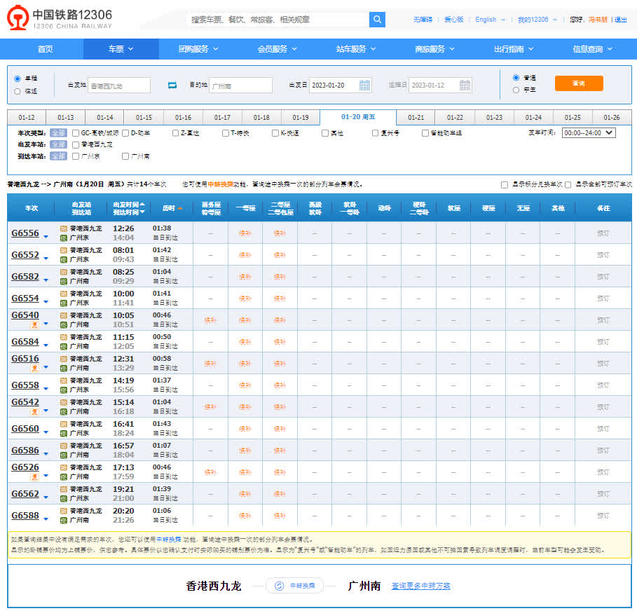 記者今日進行購票實測,發現在12306網站購買香港西九龍至深圳以及廣州的高鐵車票,由於網站卡頓的原因,多數時間均無法顯示班次,需要多次刷新才能夠顯示班次。