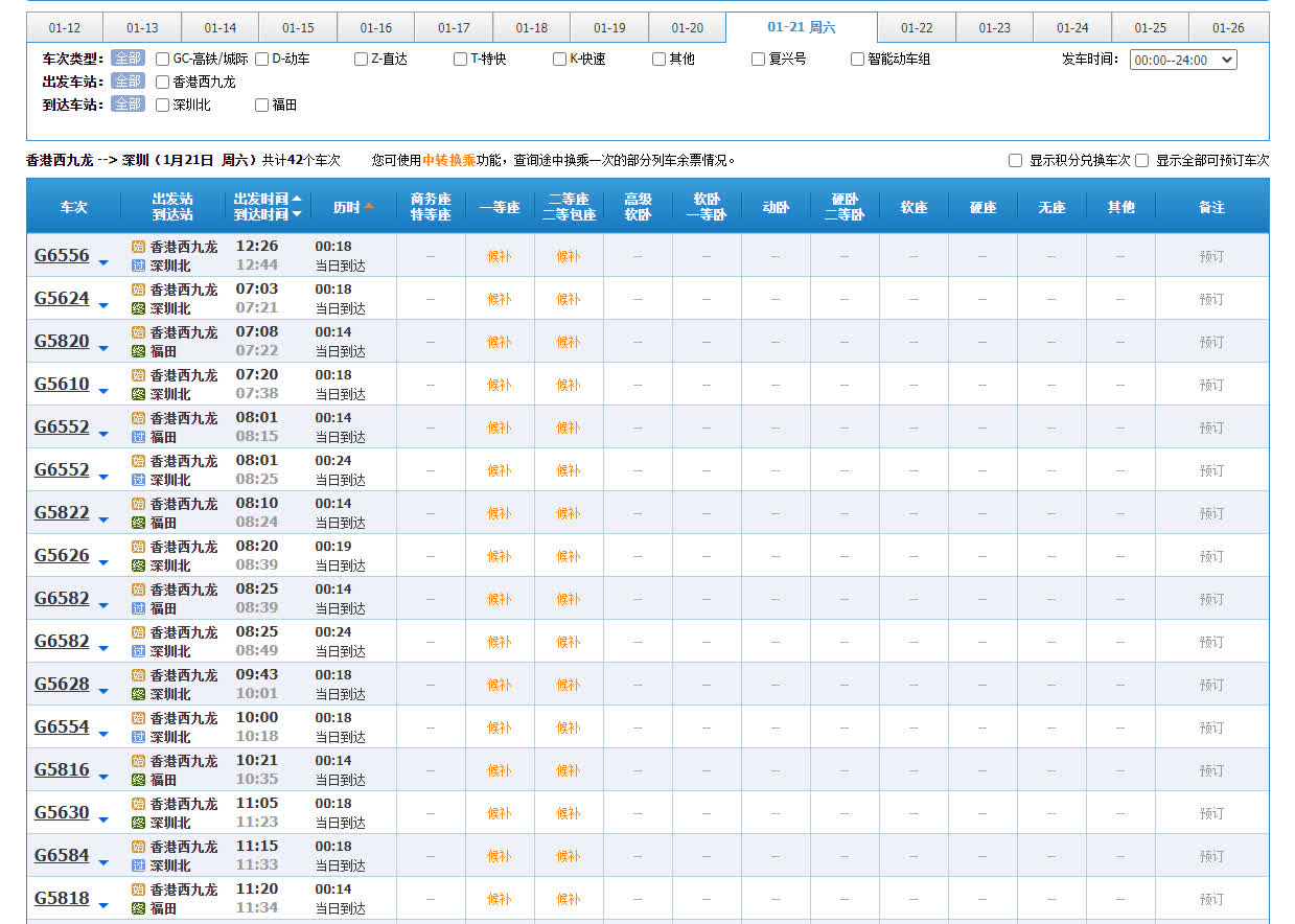 此外,記者發現越近年關的高鐵票越搶手,年廿八起大部分班次都顯示為「候補」狀態。