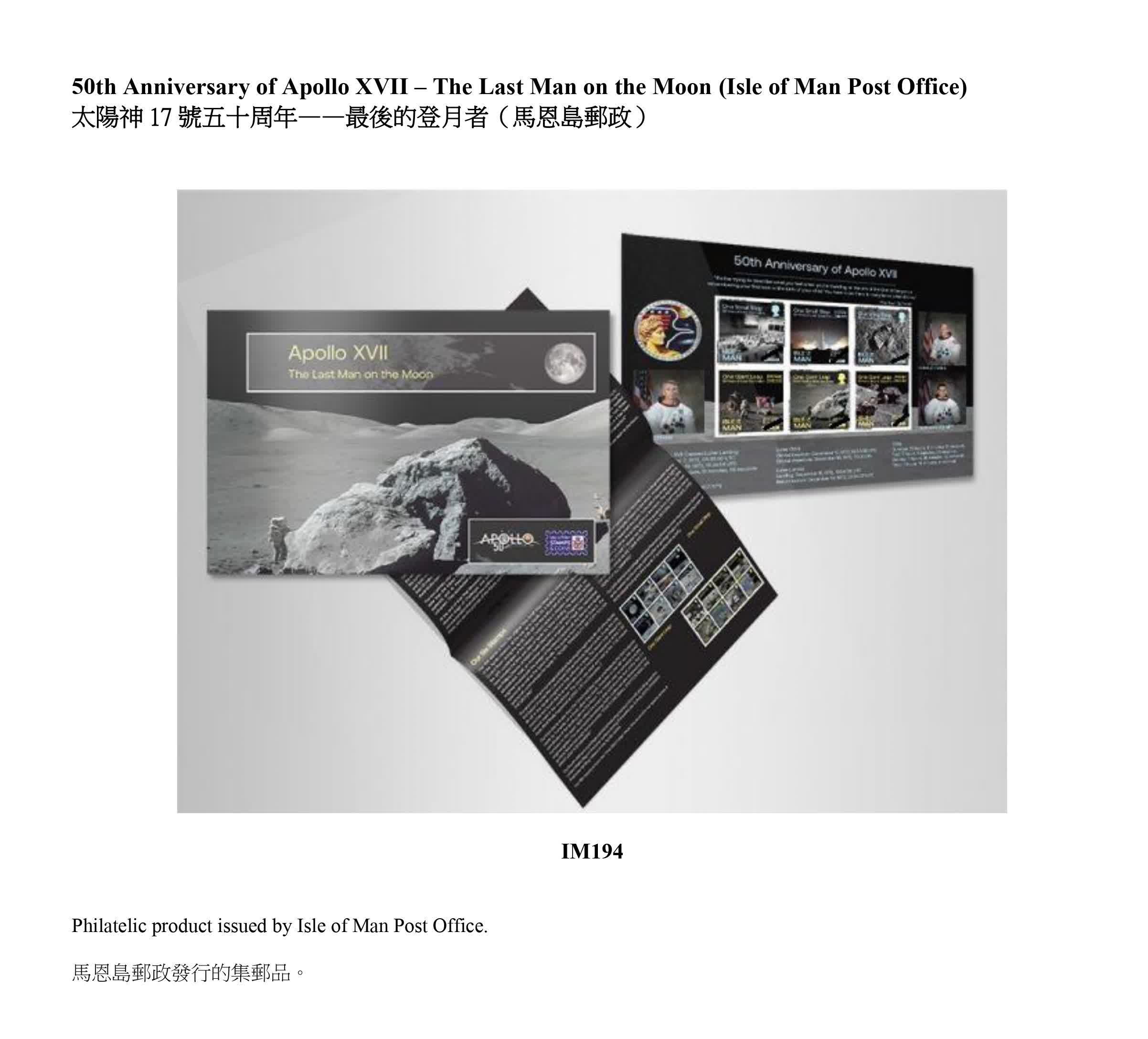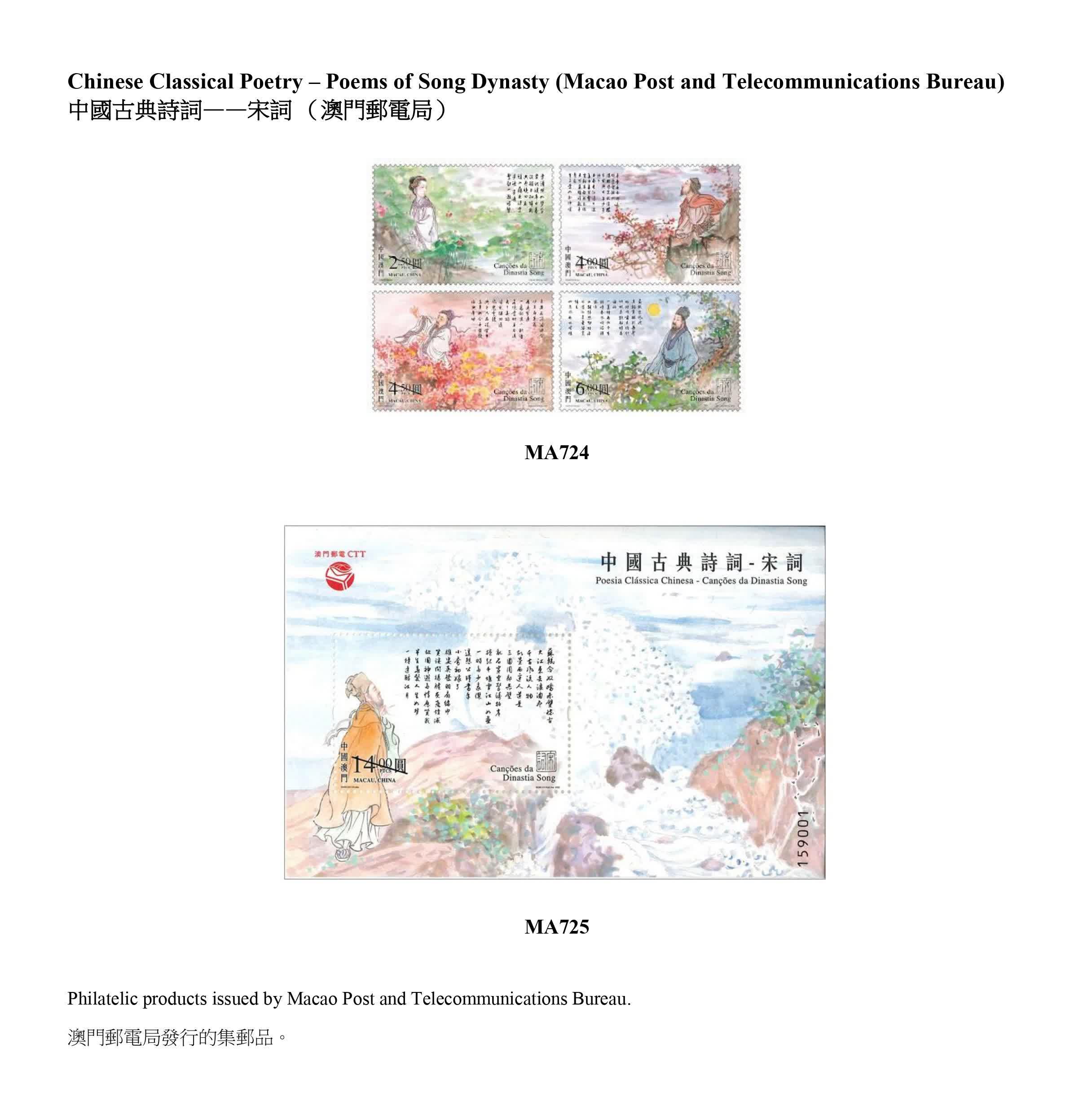 澳門郵電局發行以「中國古典詩詞——宋詞」為題的郵票,特選5首宋詞製成郵票,以供同好鑒賞和收藏。馬恩島郵政推出「太陽神17號五十周年——最後的登月者」小全張,描繪太陽神計劃及登月任務的重要時刻和事件。
