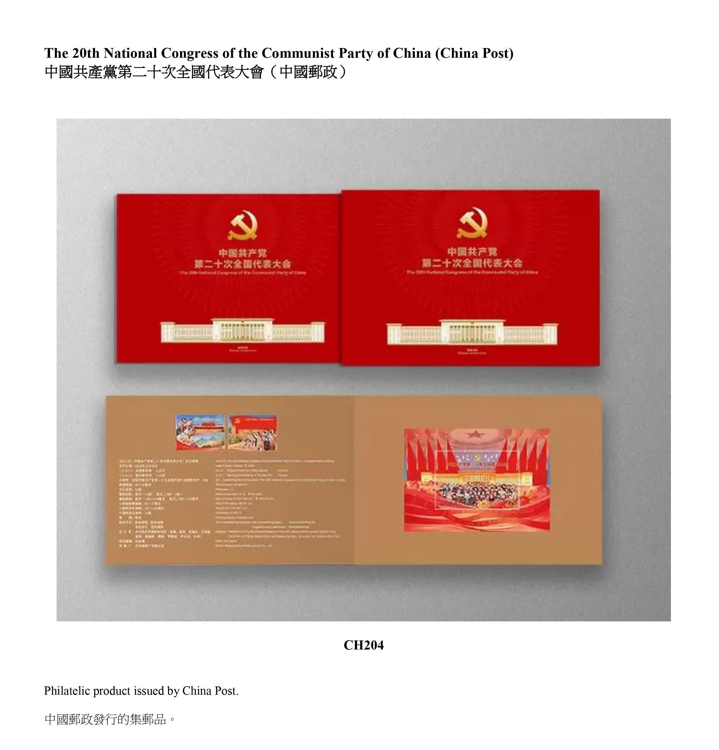 為慶祝中國共產黨第二十次全國代表大會召開,中國郵政發行「中國共產黨第二十次全國代表大會」紀念郵票。中國共產黨第二十次全國代表大會,是在全黨全國各族人民邁上全面建設社會主義現代化國家新征程、向第二個百年奮鬥目標進軍的關鍵時刻召開的一次十分重要的大會。